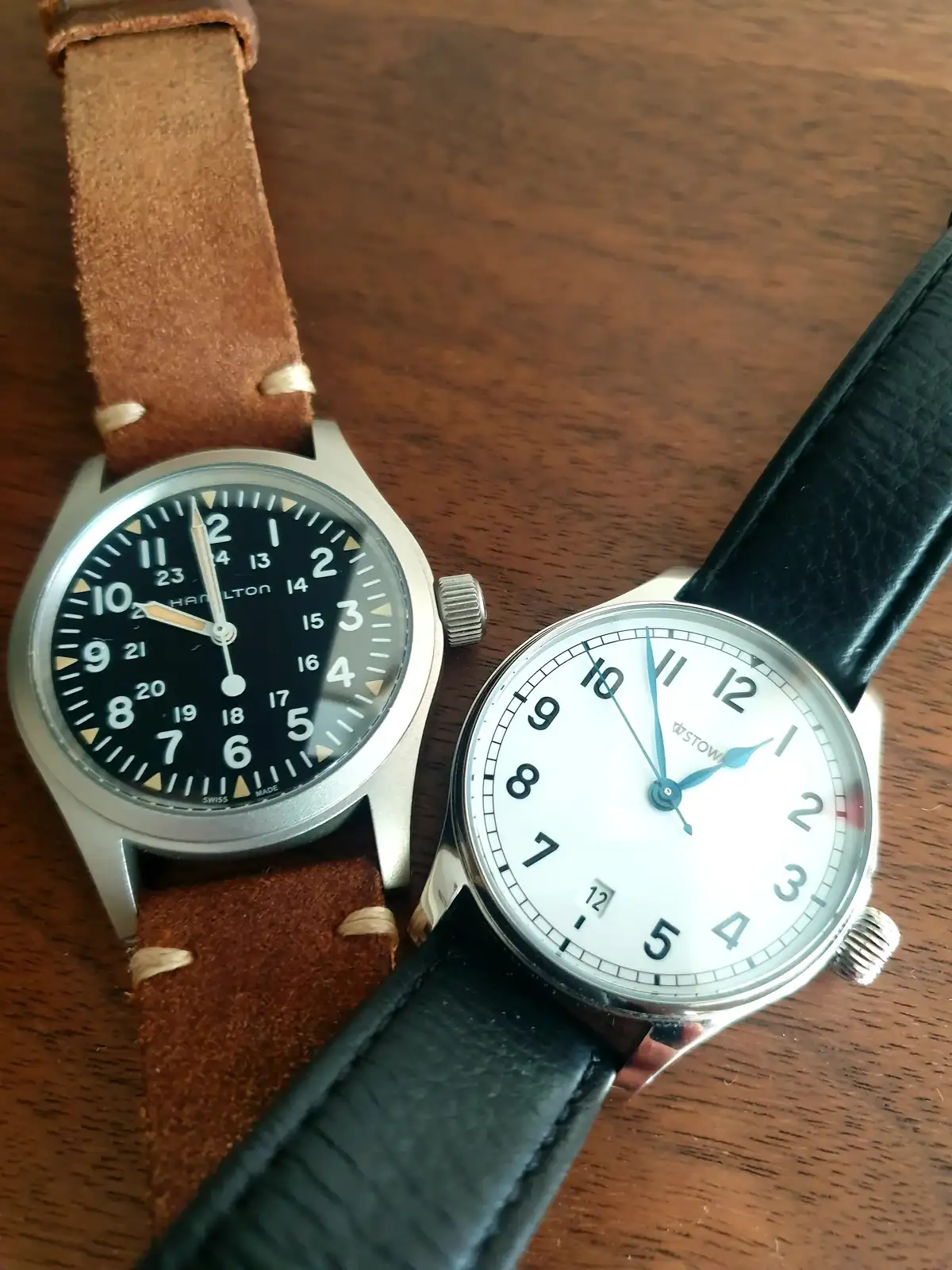 Realmente no se por qué... pero me quedo con tu "penúltimo", el Stowa .Buen viernes a tod@s. En la foto el que sale y el que entra, todavía sin poner en hora🤣