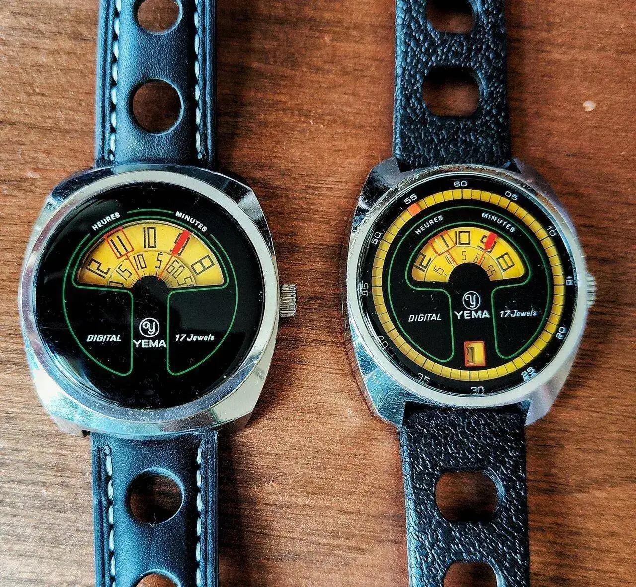 Preciosos. Si te soy sincero en los setenta este tipo de relojes mecánicos no me gustaban nada aunque tuve un par o tres de horas saltantes. Pero como los buenos vinos creo que envejecen muy bien y ahora me encantan.Pues para hoy un esquivo yema digital setentero, que ha costado muuuuchoo tiempo encontrar... para hacer compañía a su hermano feo 😜