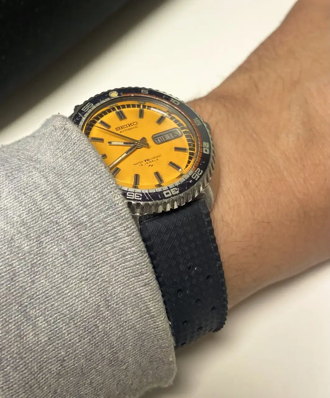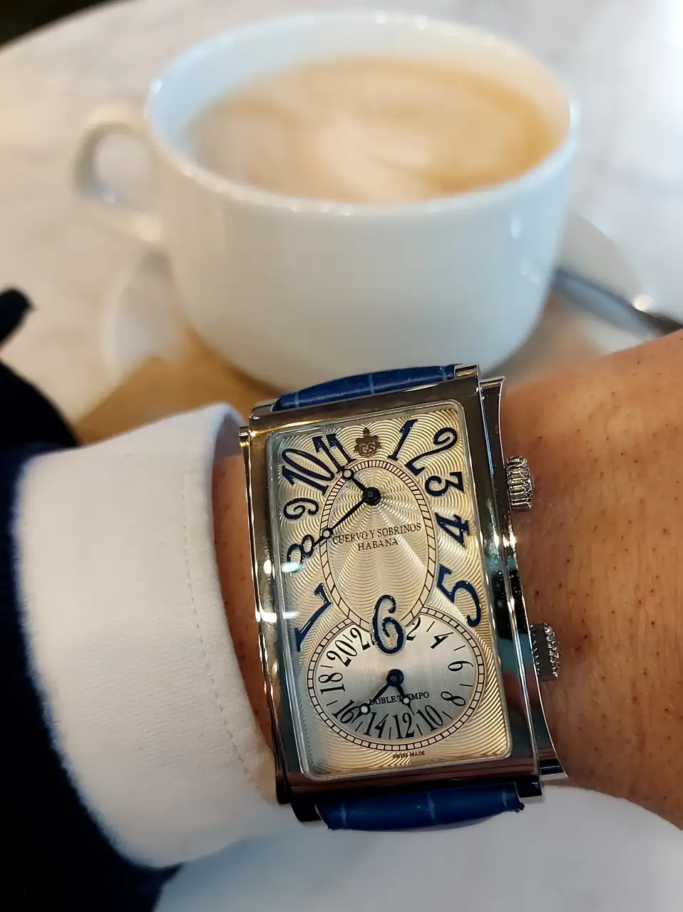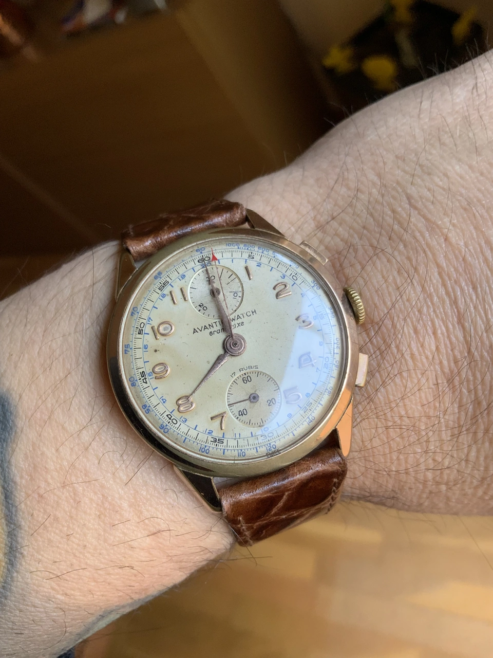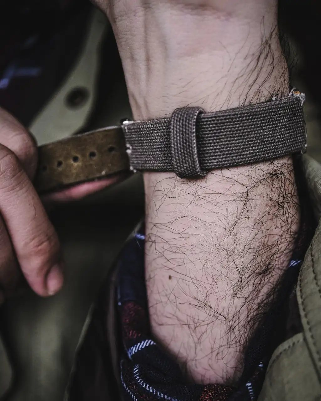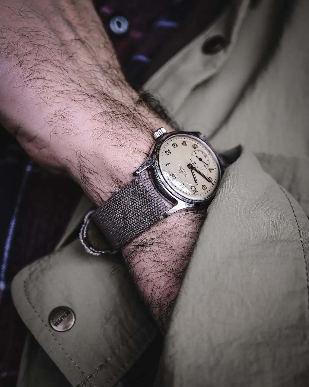 No había hecho nunca correas antes y esta es una de sus primeras correas. La ha hecho para mí Smiths, con una tela antigua de la misma época que el reloj. Os podéis imaginar mi ilusión y el valor que tiene. Me la ha mandado desde Inglaterra.