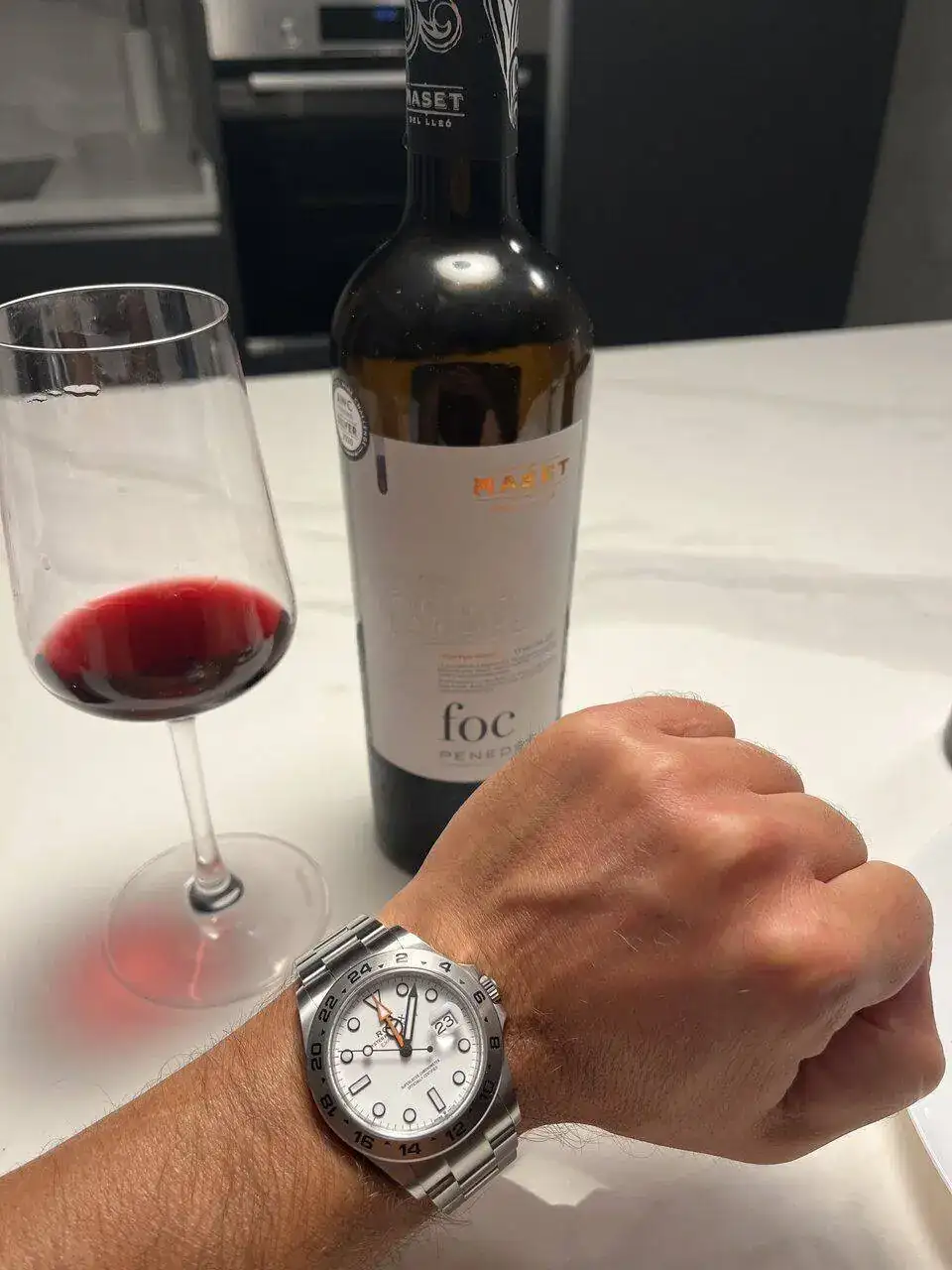 Buen reloj y también buen vino 🍷Las aguja de 12 y la de 24 en el mismo huso. Eso significa que ya estoy en casa.
