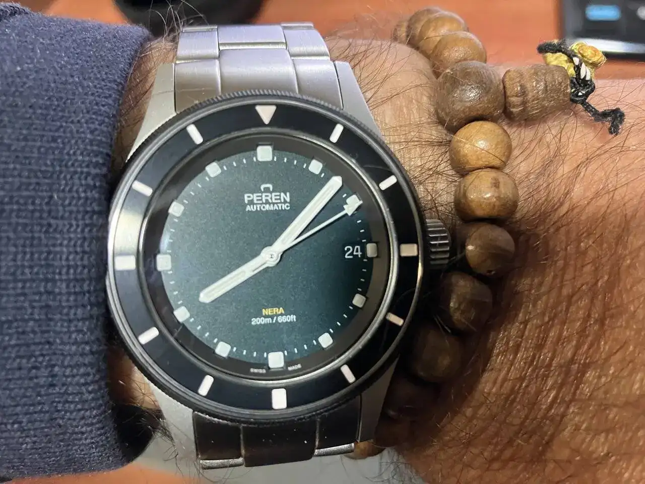 Parece que no llevas reloj, comodísmo (y mas con esta correa), ligero, delgado para ser un diver. Una de las mejoras compras que he hecho en los últimos años, en serio. A pesar de que nunca me gustaron los relojes de menos de 41/42 mm. para nada se ve pequeño con mis 18,5 de muñeca y acostumbrado a relojes de 47 y 48 mm. Una gran sorpresa.