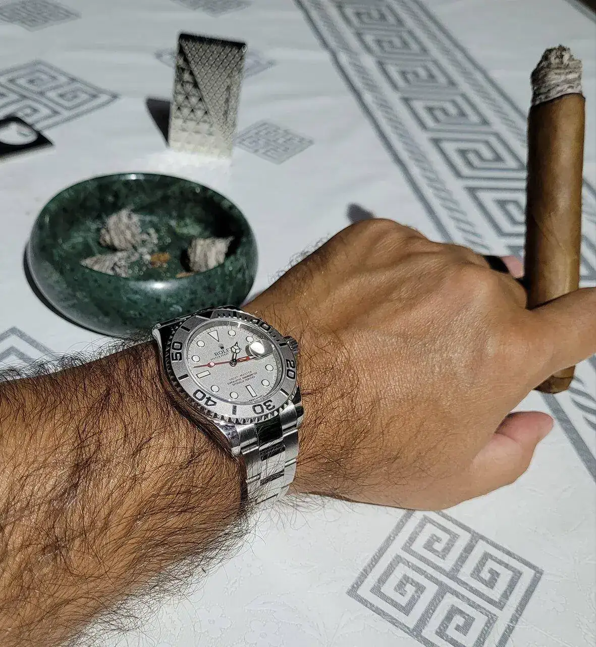 El Yacht Master precioso !. El puro ya no tanto, más que nada por tu salud. Enhorabuena por el relojazo.