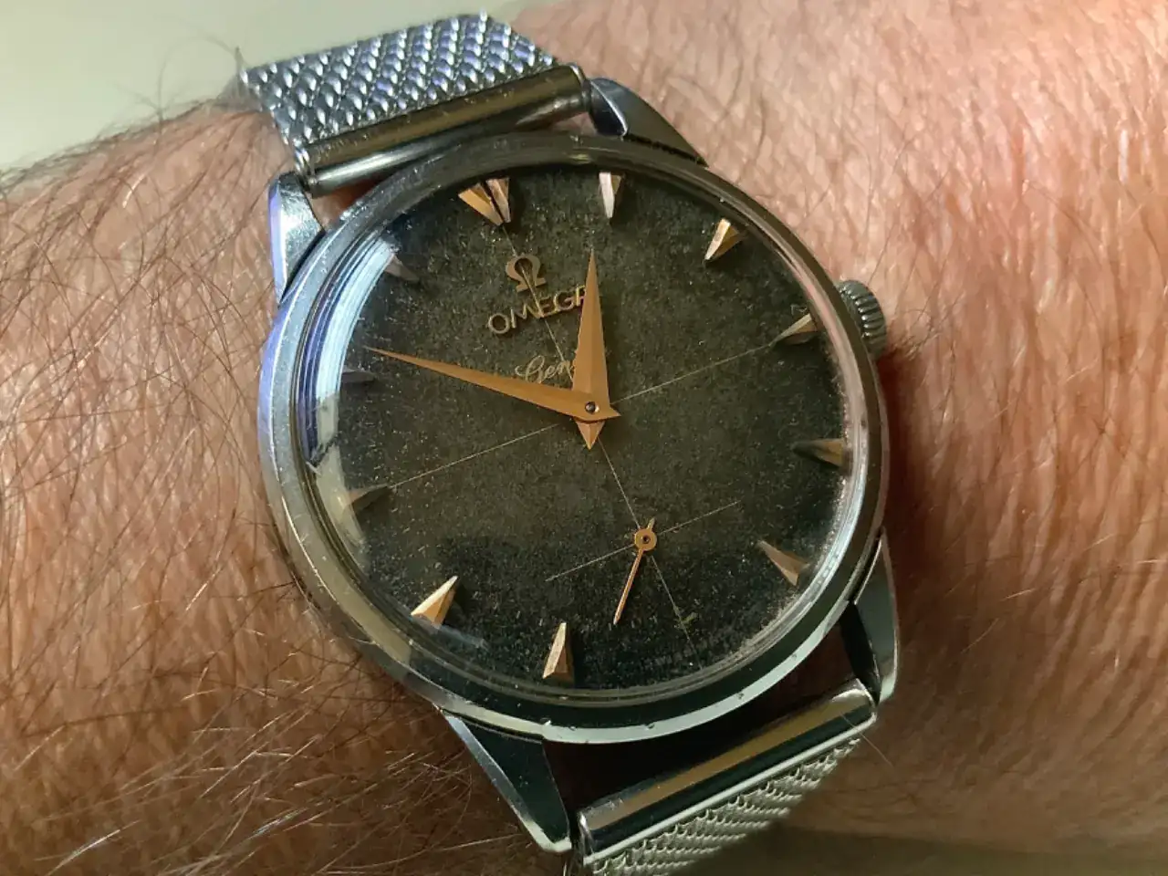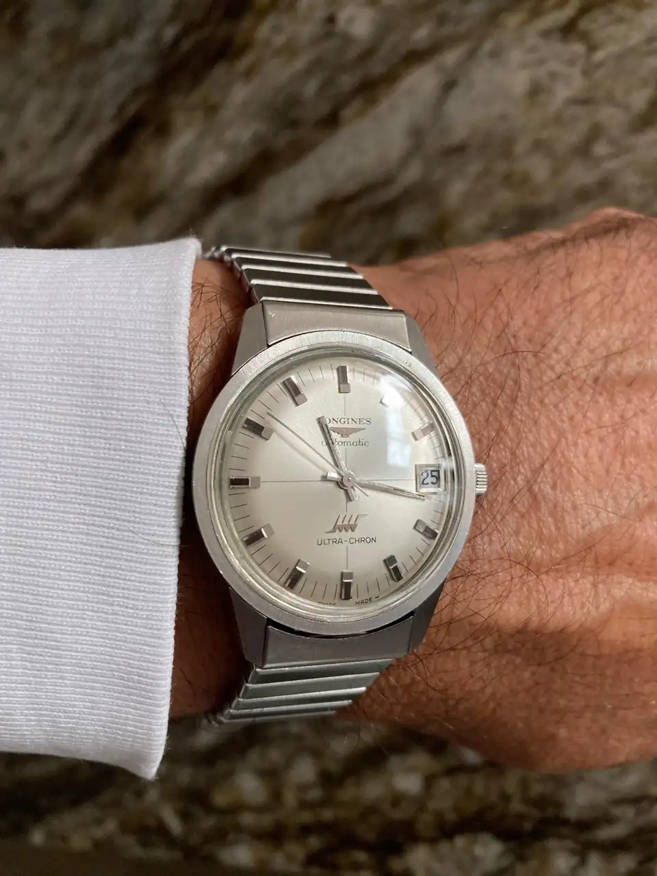 Buenos días y gracias al compañero Goldoff por abrir este hilo. Hoy sería el cumpleaños de mi hermano Carlos que falleció este verano y es quien me inoculó el virus de los relojes vintage. Solía compartir con él nuestras compras o hazaña mercadilleras así que hoy vamos con el último en llegar. Cómo siempre cuando cae una pieza de caza mayor tiene su historia ya que yo no manejo éstos presupuestos. De vez en cuando me gusta mirar el orienta precios de Todocolección, así veo cómo va el mercado real y de cuando en cuando alégrame (mentira cochina, más bien tener envidia) cuando veo que alguien se ha llevado una ganga. El sábado pasado fue uno de esos días y me tropecé con una venta que me dió mucha envidia lo admito, hasta la comenté con mi señora. El domingo a primera hora de la mañana para mí sorpresa el reloj volvía a estar en venta y me apresuré a comprarlo ofreciendo el mismo importe a la vendedora que había aceptado en la venta de la víspera. El único inconveniente de este reloj es que la vendedora no se atrevía a abrir la tapa trasera para enseñar el calibre y por eso lo tengo yo