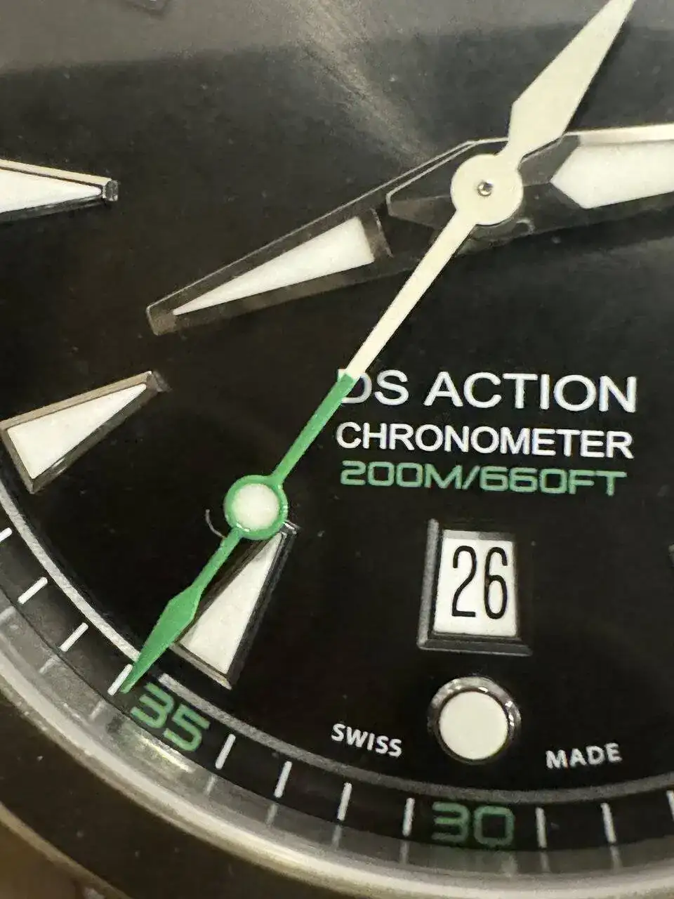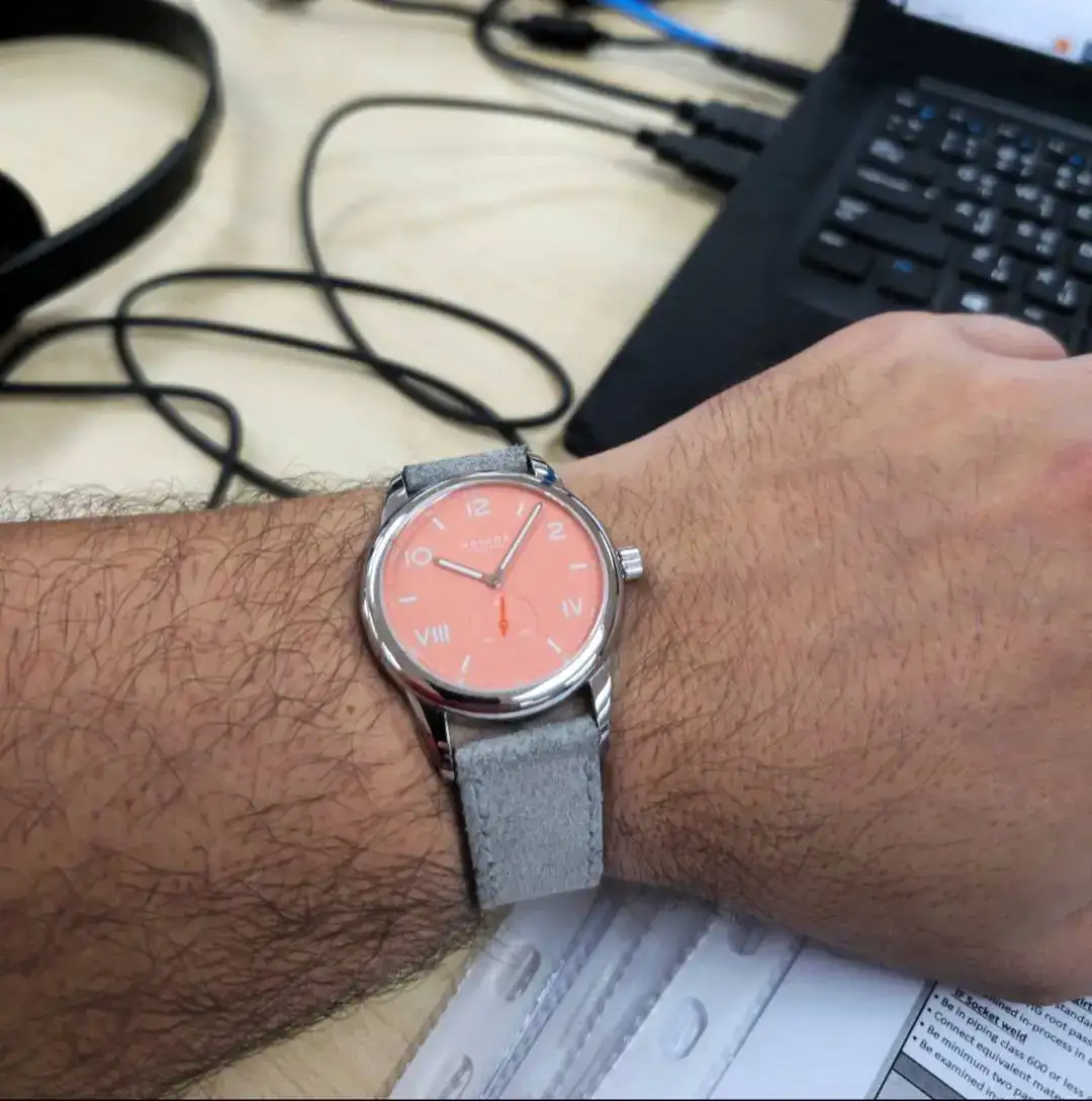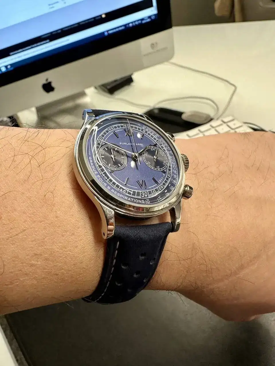 Muy bonitoEstrenando pantalones, las correas de cuero vegetal de Furlan Marri desmerecen el reloj. Me gusta mucho más con esta racing