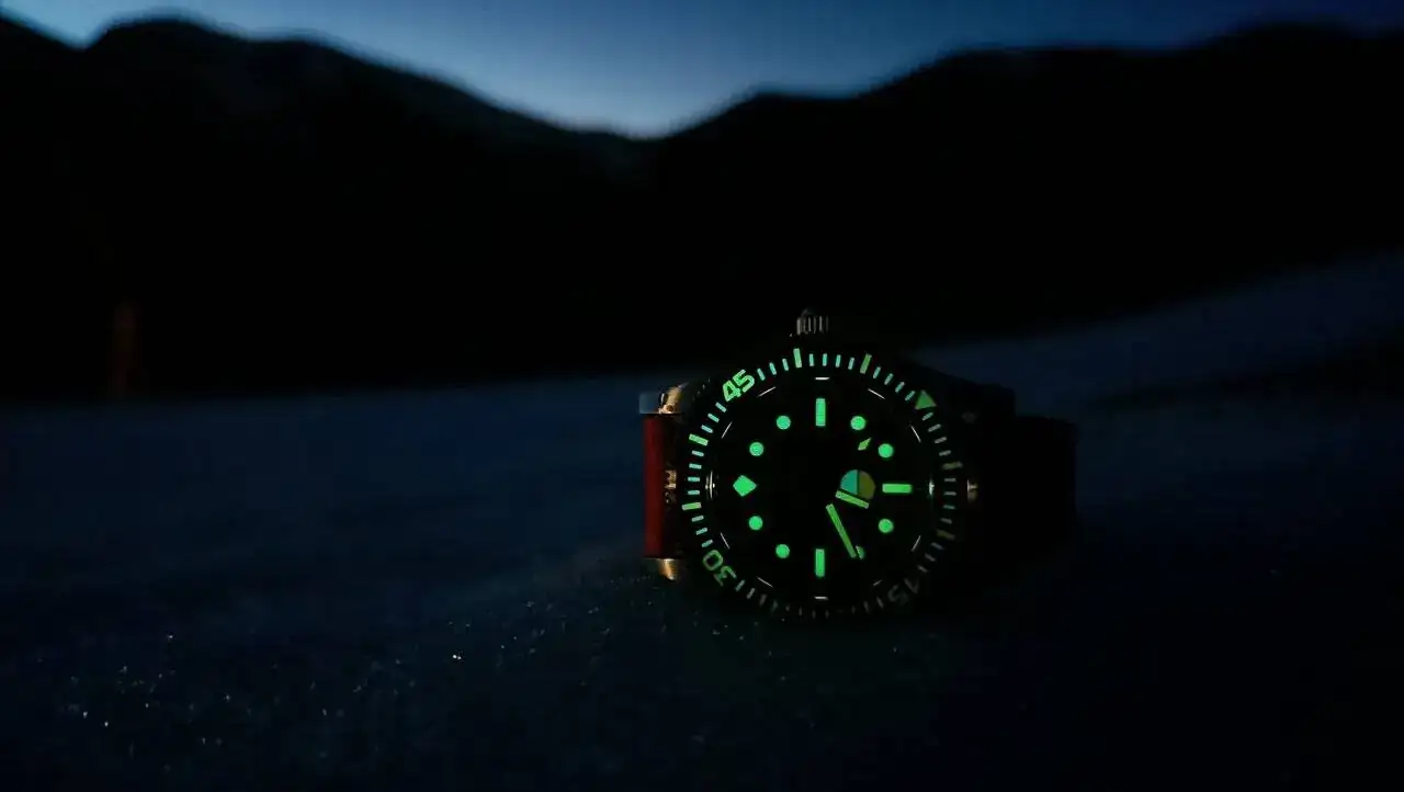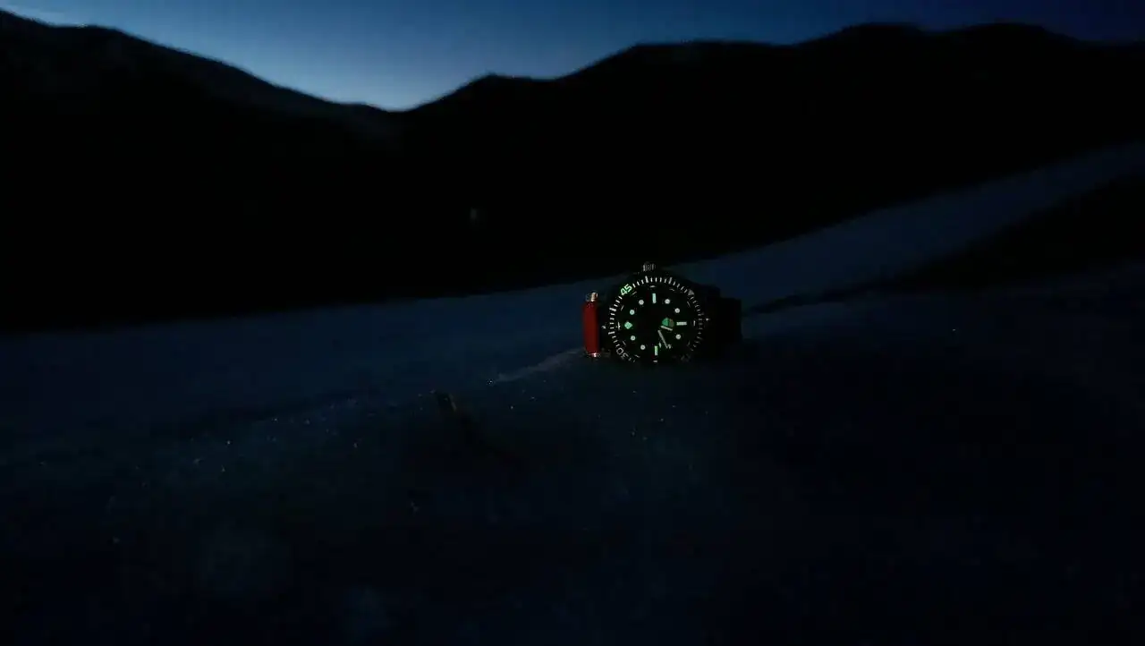 Muy bonita imagen 😀. Y muy poco común... suelo ver fotos del lumen de nuestros relojes en interiores. Esta es magnífica con esa silueta, de lo que me parece una sierra, al fondo. Preciosa compañero 👏👏¡Viernes! Que paséis buena noche y a rematar bien la semana.