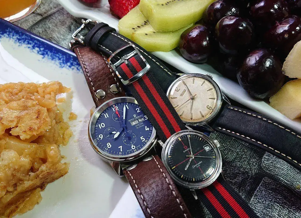 Vaya trío guapo, pero este seamaster con la Omega en rojo es fantástico.¡¡Buenos días, Mandrakeros!! Último viernes de mes y desayuno como corresponde
