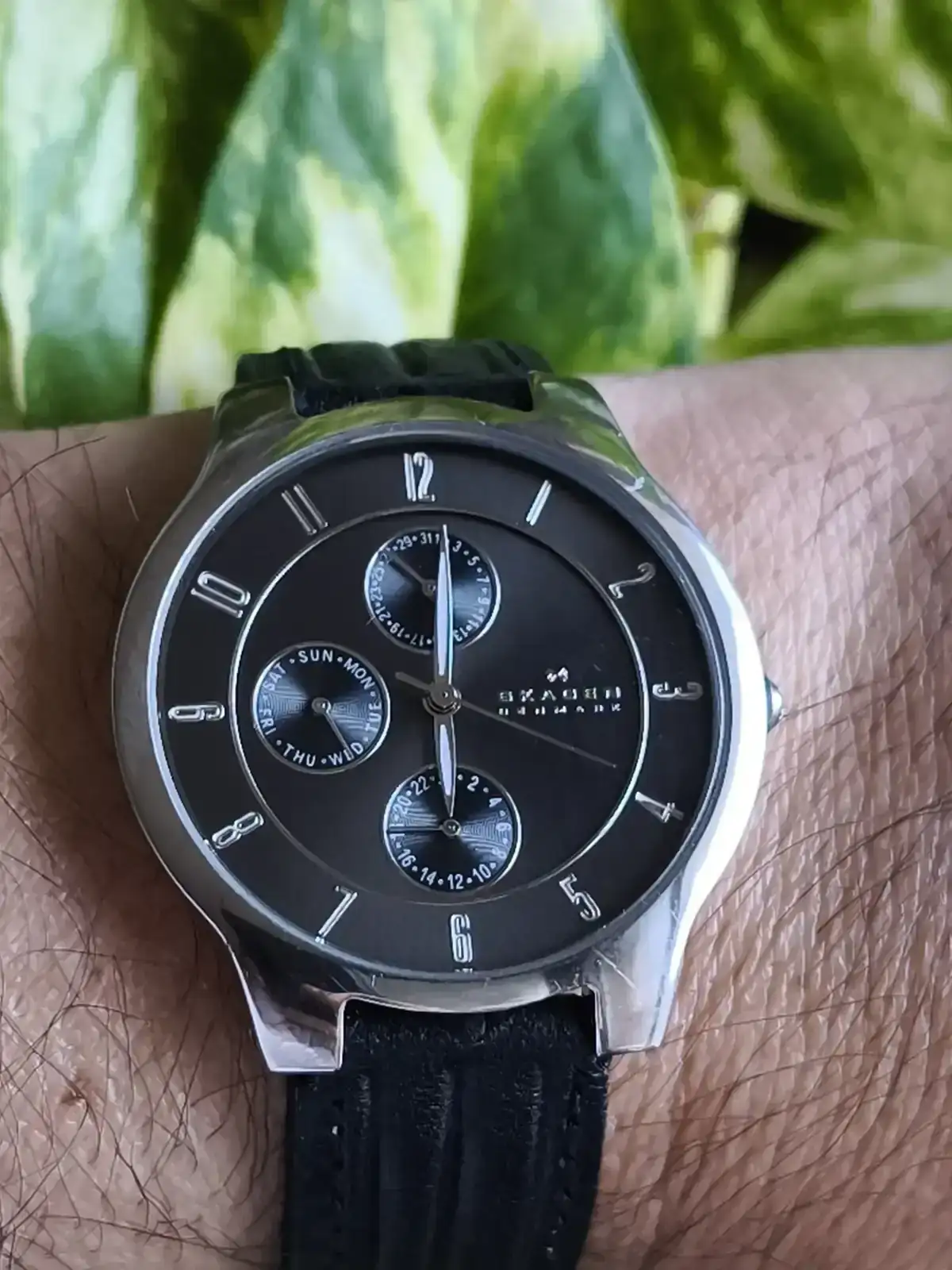 Y es muy bonito 👌Un Skagen Slimline 37mm con intangibles que lleva 15 años conmigo, la correa original se desintegró hace mucho...