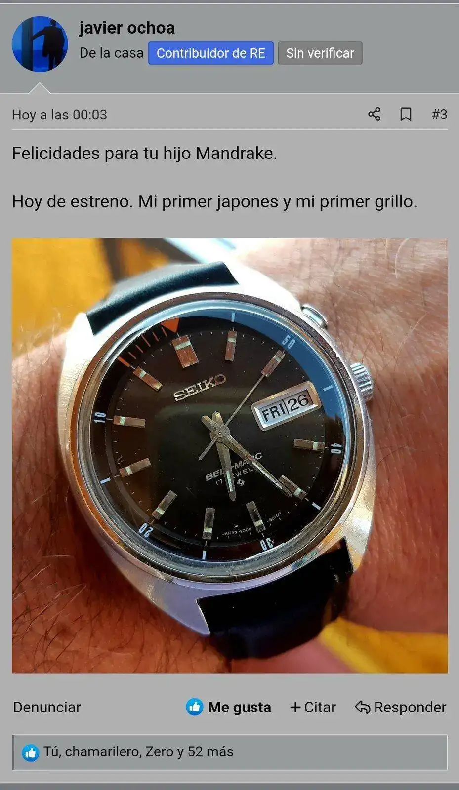 • El foro de relojes de habla hispana con más tráfico de la Red, donde un reloj es algo más que un objeto que da la hora. Relojes Especiales es el punto de referencia para hablar de relojes de todas las marcas, desde Rolex hasta Seiko, alta relojería, relojes de pulsera y de bolsillo, relojería gruesa y vintages, pero también de estilográficas. Además, disponemos de un foro de compraventa donde podrás encontrar el reloj que buscas al mejor precio. Para poder participar tendrás que registrarte.