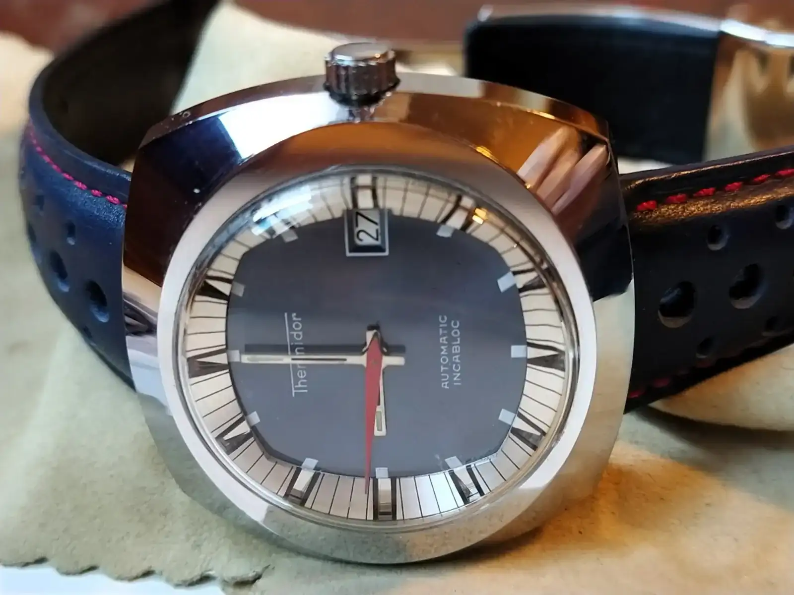 Cómo luce el mecanizado de la caja con ese dorado 👌🏼Gracias, compañera. Creo que se disfruta más en la mano que en la muñeca. Me da respeto estrenarlo.Esencia setentera, sí señor: caja cojín, toque de color y, mi debilidad, índices de taco 😍😍😍 Que lo disfrutes mucho