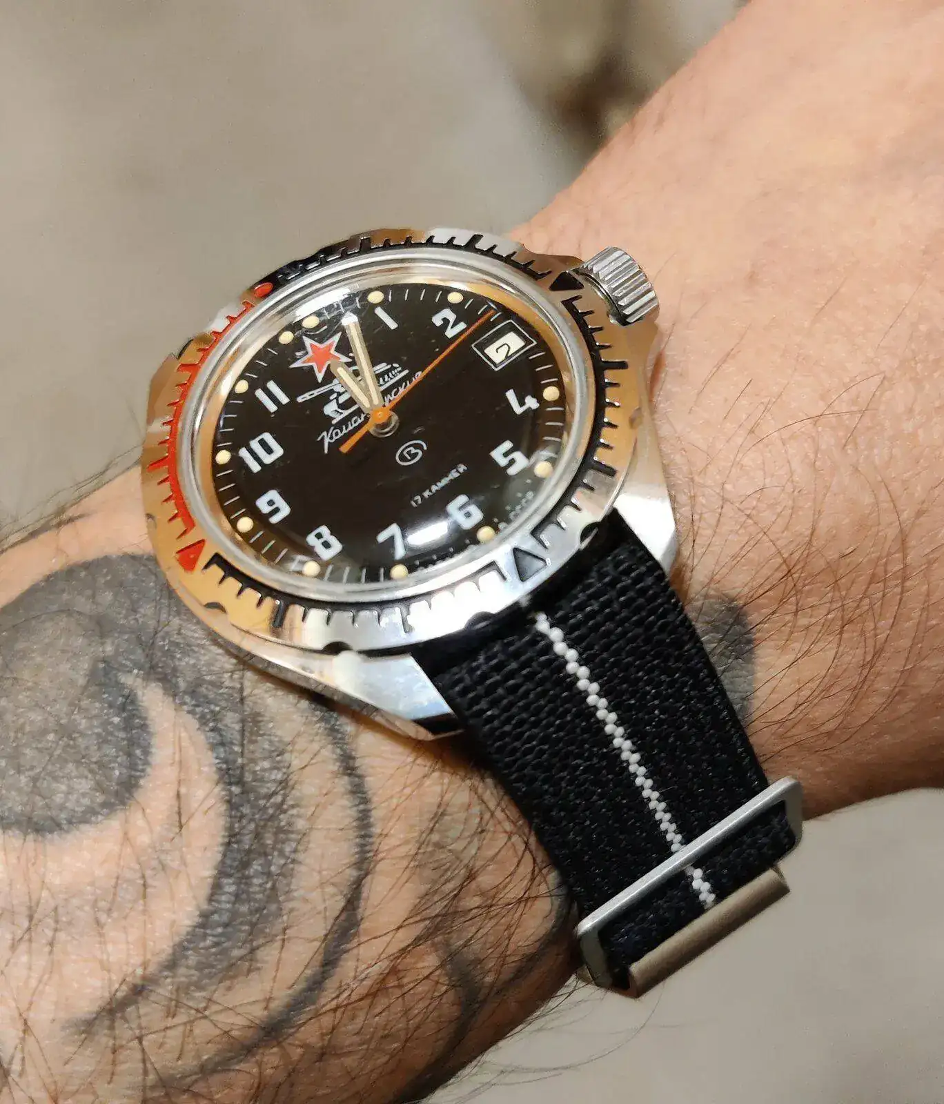Sí, totalmente de acuerdo, la correa no está nada mal para el precio del reloj, pero al verlo, lo primero que me a venido a la mente es una nato.Yo soy fan de los Komandirskie manuales ( aunque a mí me tiran los soviéticos)