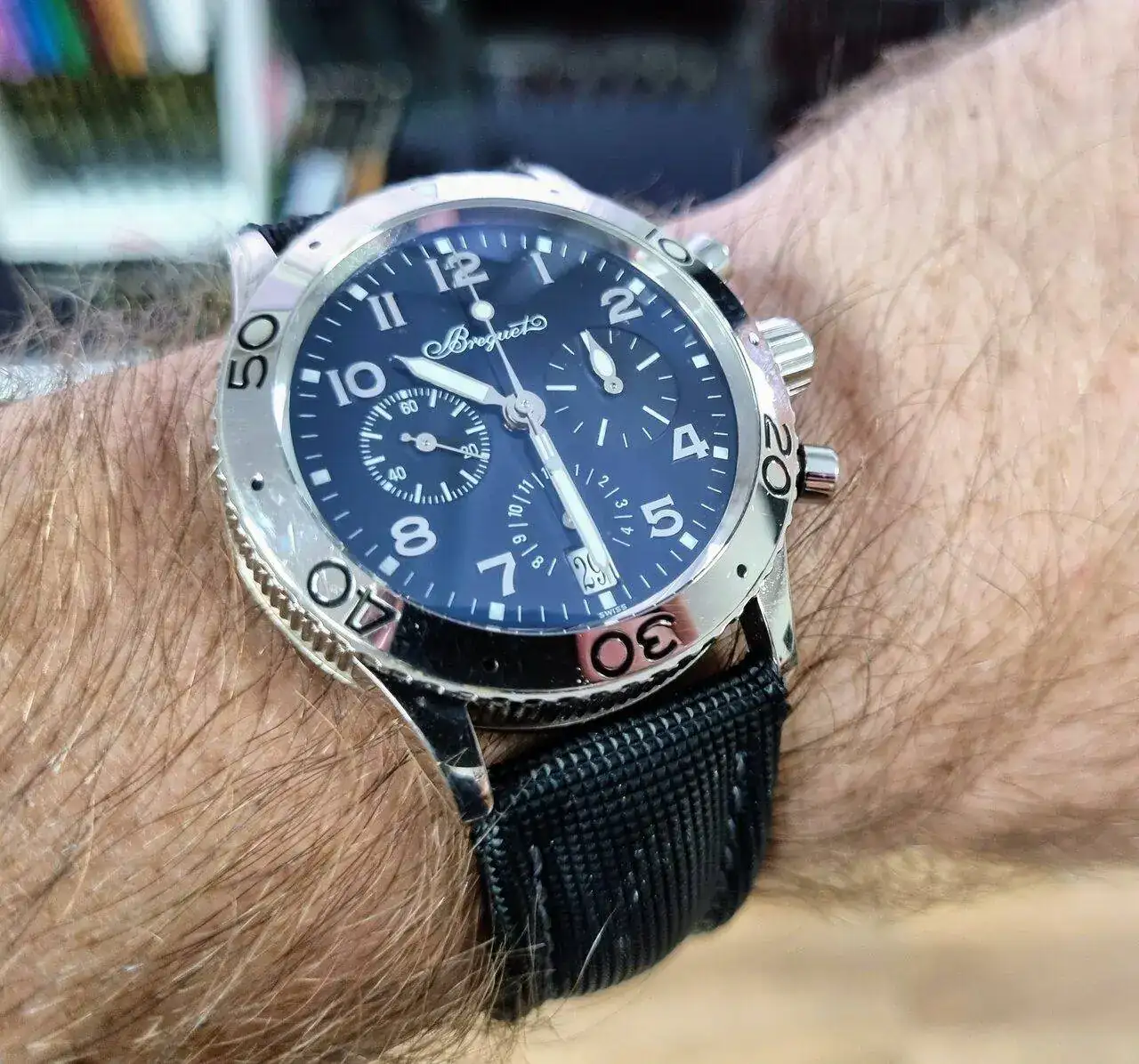 . Lo cuidé, pero no me lo quitaba, de manera que los años se le notan. Hace no mucho, Álvaro (Vodevil) le hizo una revisión completa y le cambió el cristal, solo eso. El resto muestra, muy dignamente, el paso de toda una vida.Heyyy! Ya era hora que lo sacaras. Que bello es eh!Ayer vi al compañero @argus y me dio envidia, así que hoy no habia otras que ir con el Breguet.