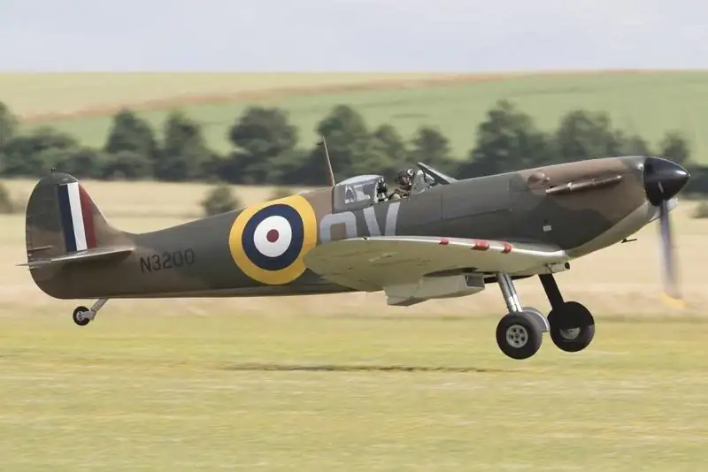 Este Spitfire MKI de la R A F estuvo (y fue derribado) en la batalla de Dunkerque (antes de la batalla de Inglaterra). Se hundió en la arena, y fue recuperado a mediados de los 80. Después de una profunda restaruración/reconstrucción, está operativo para volar, y pertenece al Imperial War Museum.