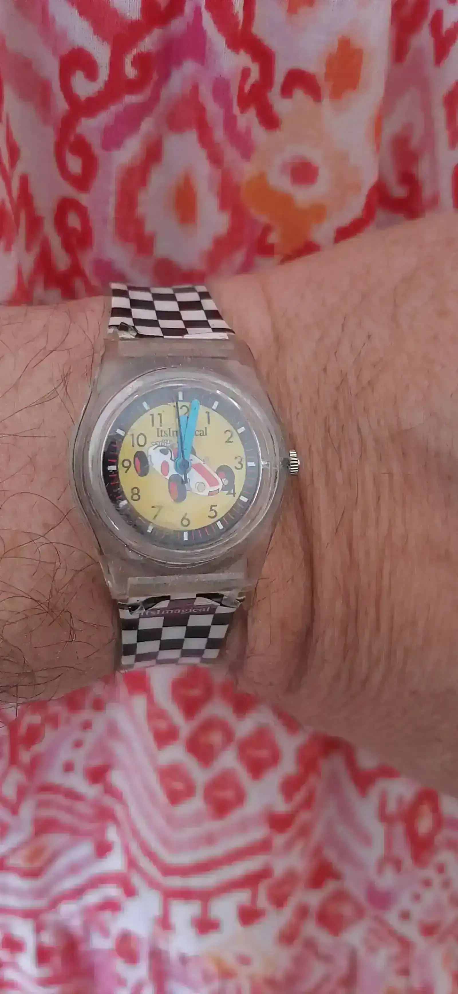 Hoy llevaré este incunable de imaginarium que fue el primer reloj que él eligió en una tienda. Me ha tocado ponerle pila, engrasar el sello y tirar de sentido del humor.