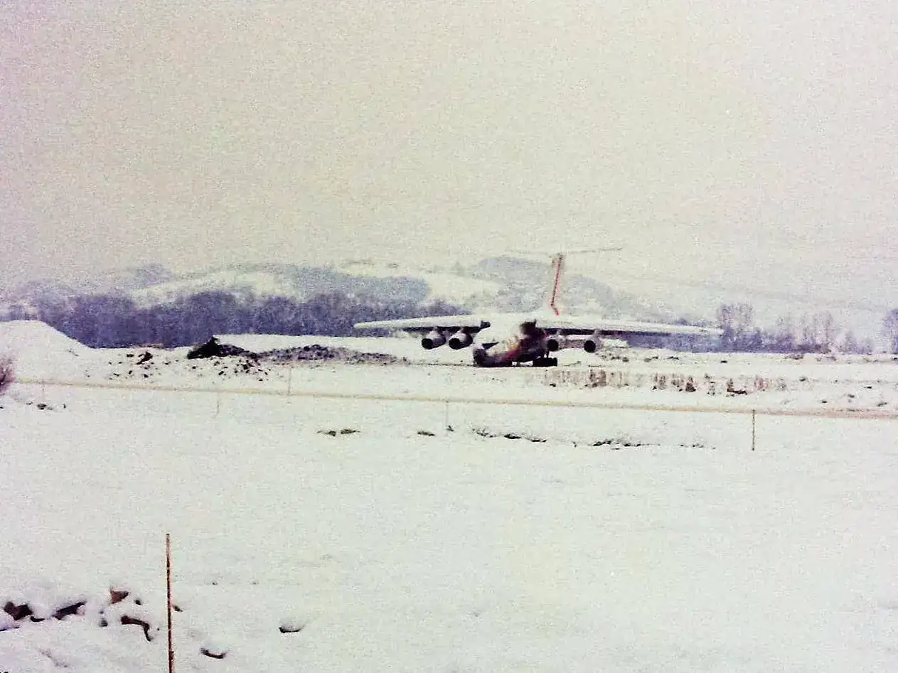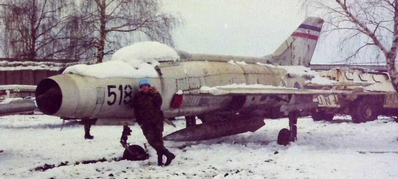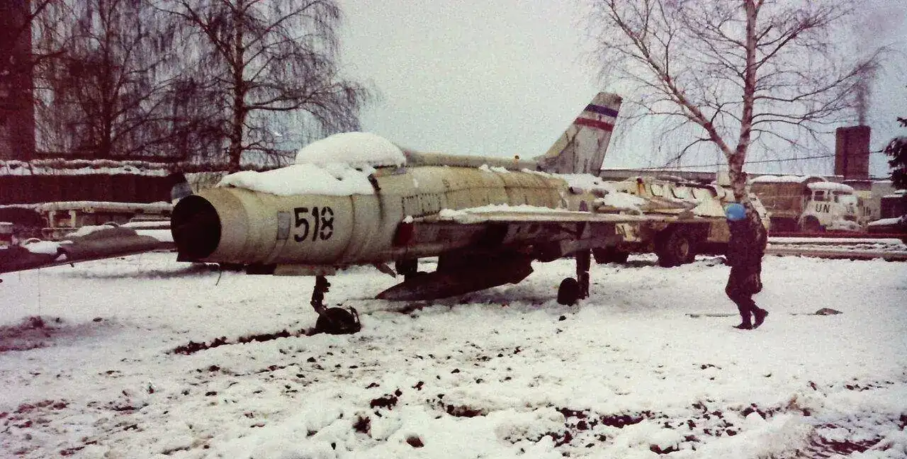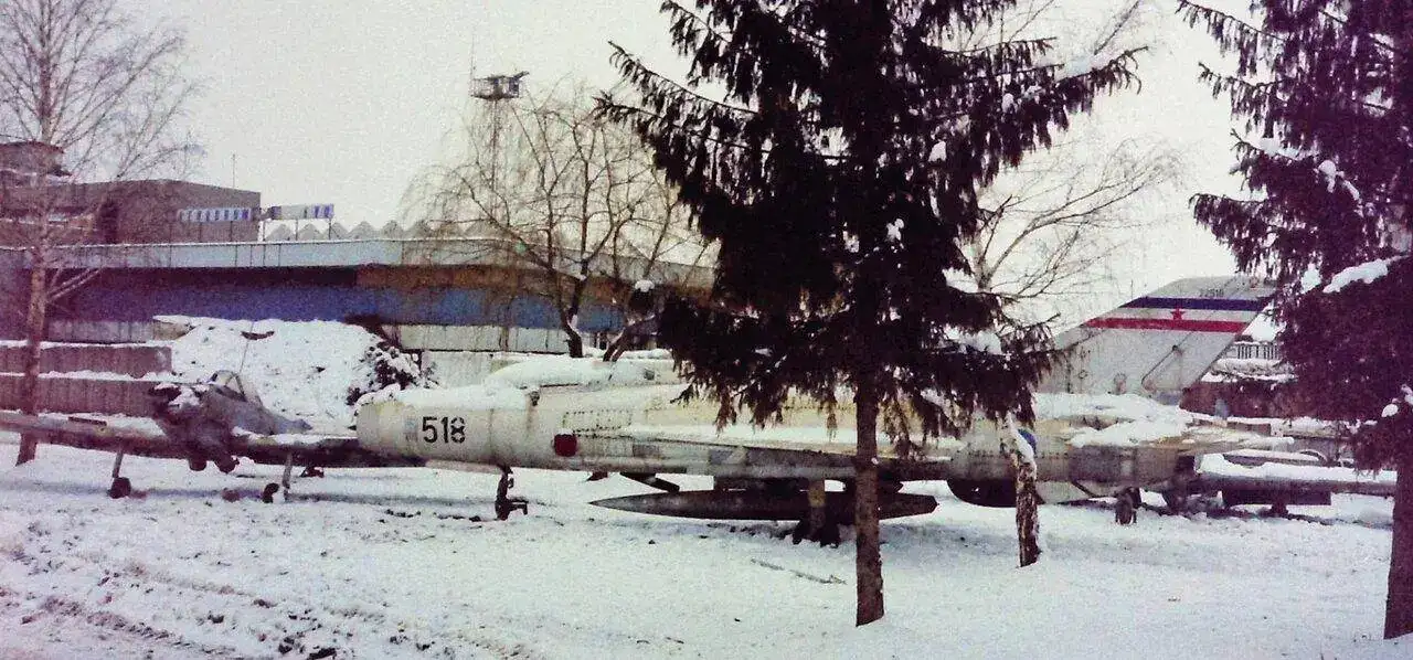 Exactamente esa es la bandera que porta en la cola, la de la antigua Yugoslavia. Creo que este es con ala en delta, y una de las versiones a las que le acoplaron uno de los varios depósitos de combustible que diseñaron, como joroba entre la cabina y la cola del avión. He visto hoy un documental, y por lo visto las primeras versiones no tenían más de cuarenta y cinco minutos de autonomía de vuelo.