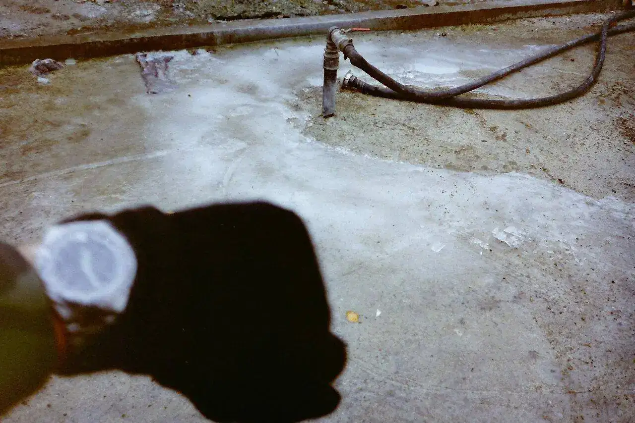 Fíjate en este escape de agua de una manguera, como se ha convertido en hielo a las 12:30 horas, según ese Seiko, que conservo.