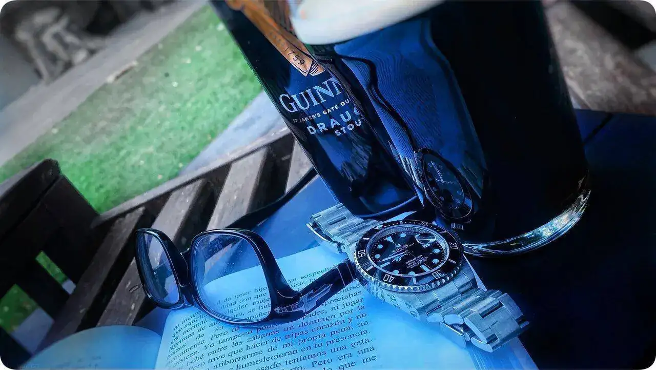 Precioso reloj, exquisita cerveza.