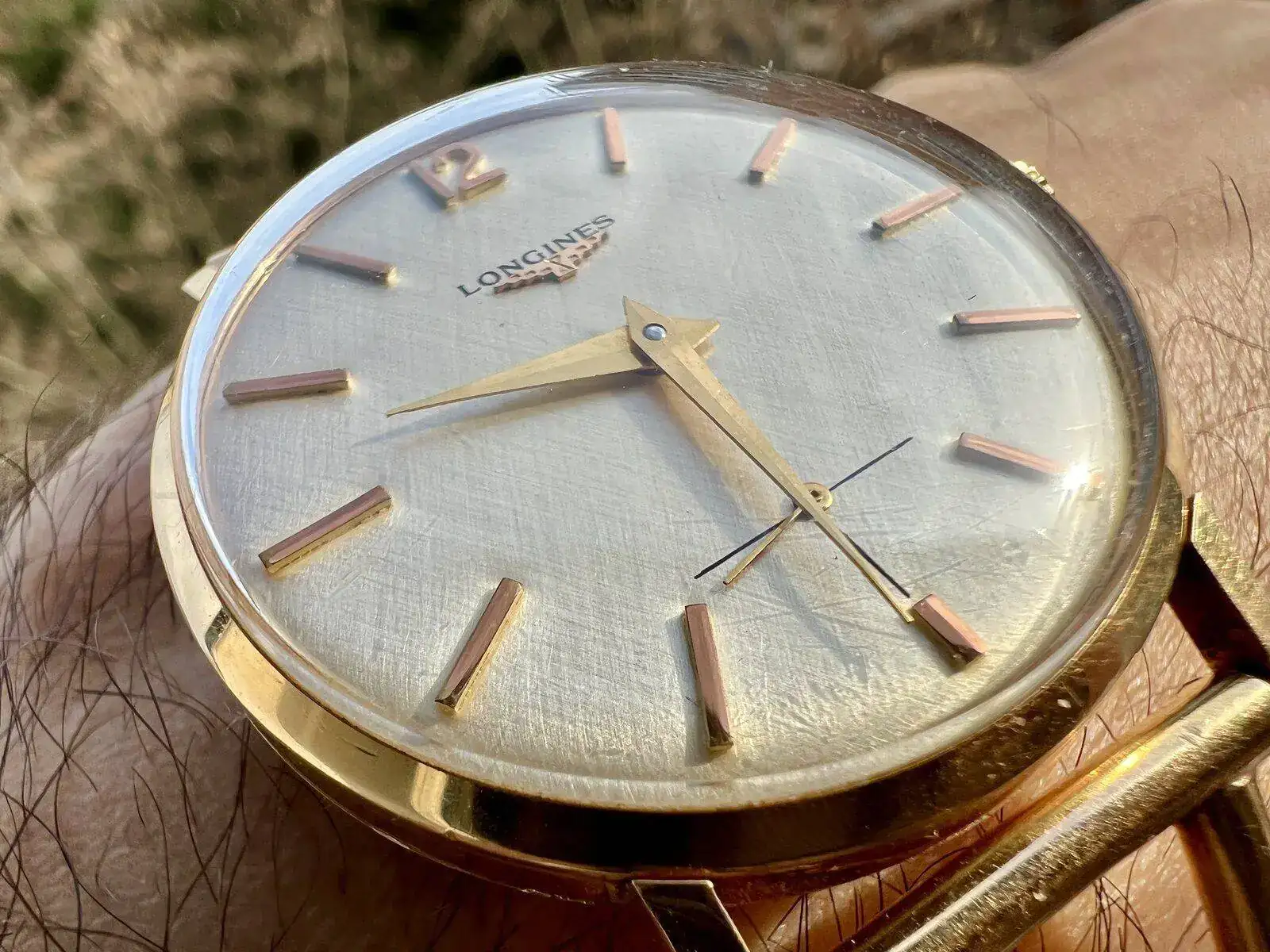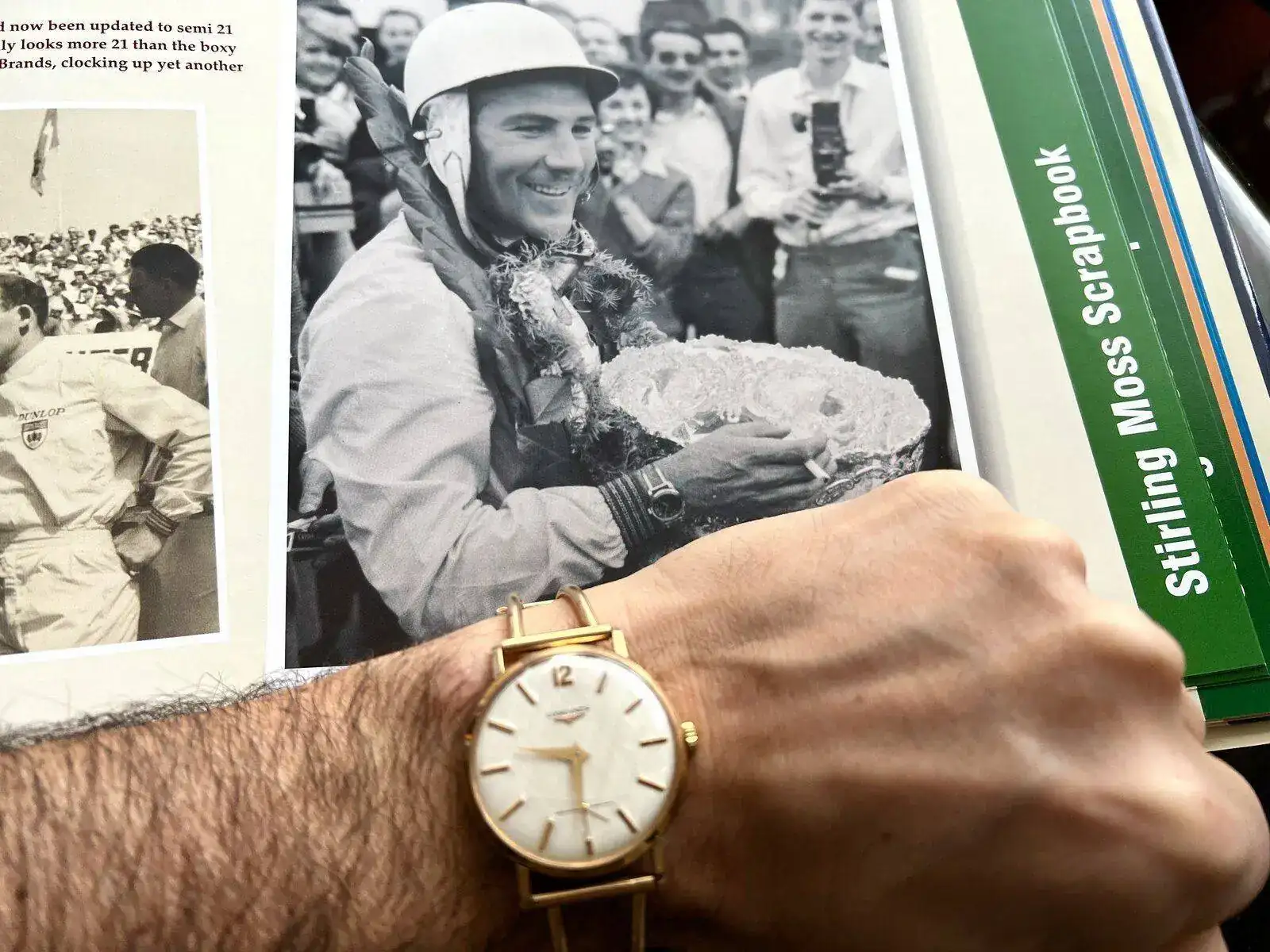 Espectacular la foto el brazalete todo, aunque no estoy de acuerdo con lo que dices una persona que porta un reloj asi por mucho que sea de vez en cuando, la elegancia la tiene en muchos aspectos 'escondidos', otra cosa esque no la muestra a menudo porque no hay tanto tiempo para disfrutar tantas bellezas relojiles o porque prevaleces otras, no quiere decir que te gusten más que la belleza que muestras, cuídate, un abrazo @Tazio NuvolariPretendiendo una elegancia impropia en mi, hoy me viste un pequeñín de 34mm y 56 años (como un servidor) y jamás restaurado que muestra un precioso dial "linen", para revisitar la vida del gran Stirling Moss, que a lo largo de toda su vida llevó diversos relojes pero siempre con el mismo brazalete que lleva mi Longines, según puede apreciarse en la segunda foto, y al que los apasionados del motor denominamos "brazalete Moss":