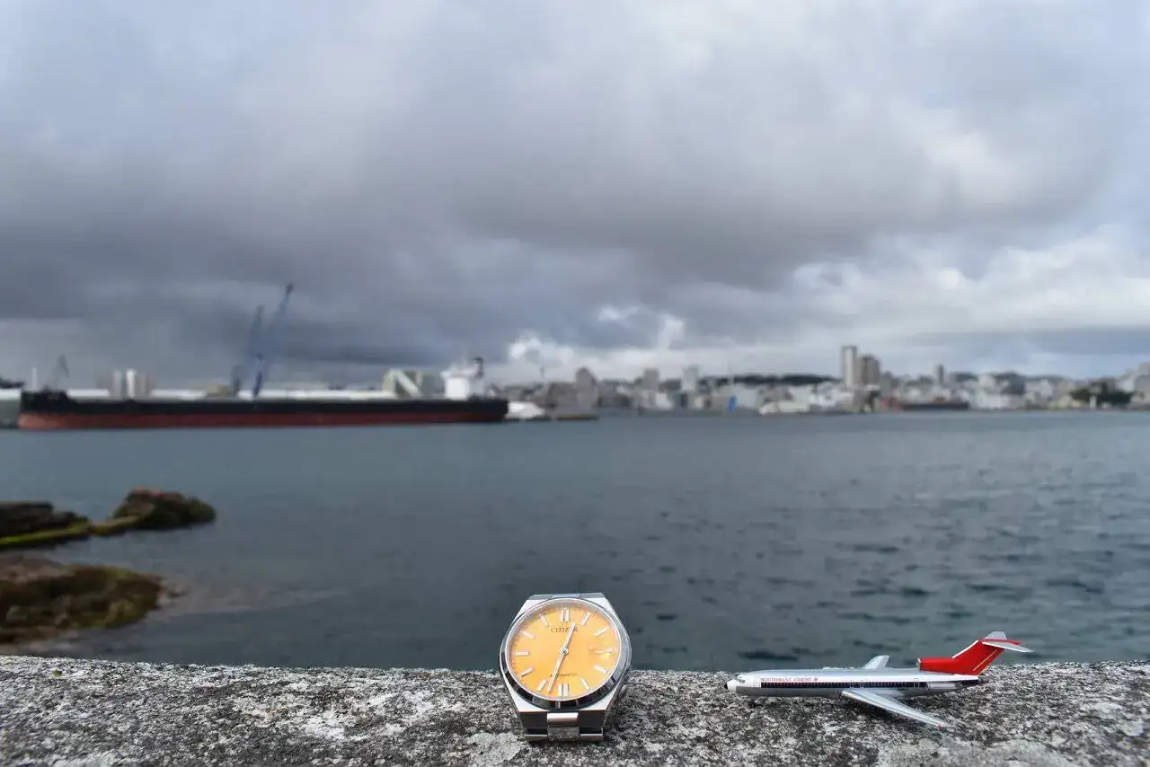 Gran foto y magnífico aporte.Citizen Tsuyosa y Boeing B727 de Northwest Orient.