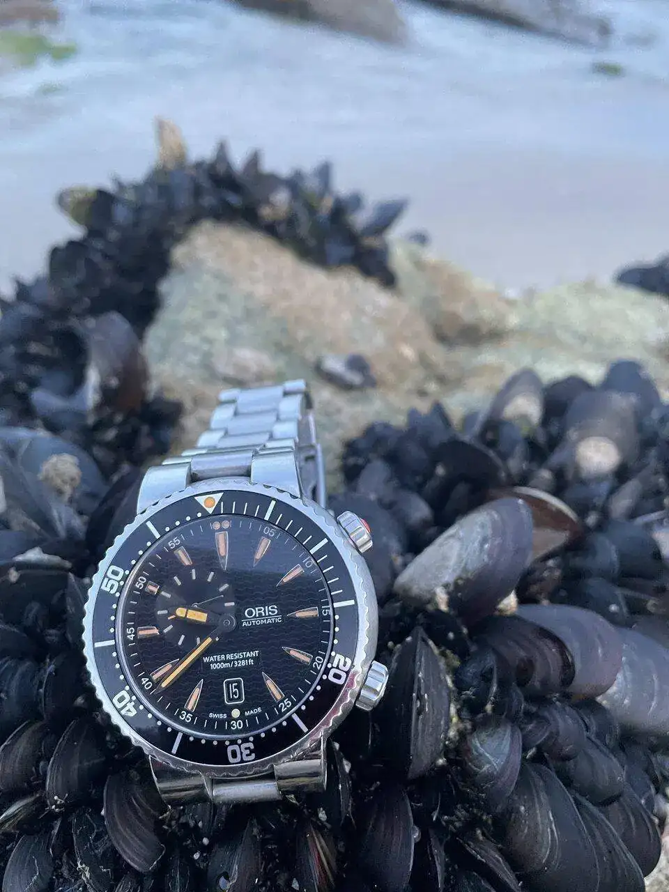 Espectacular el Oris sobre base de mejillones in situ.