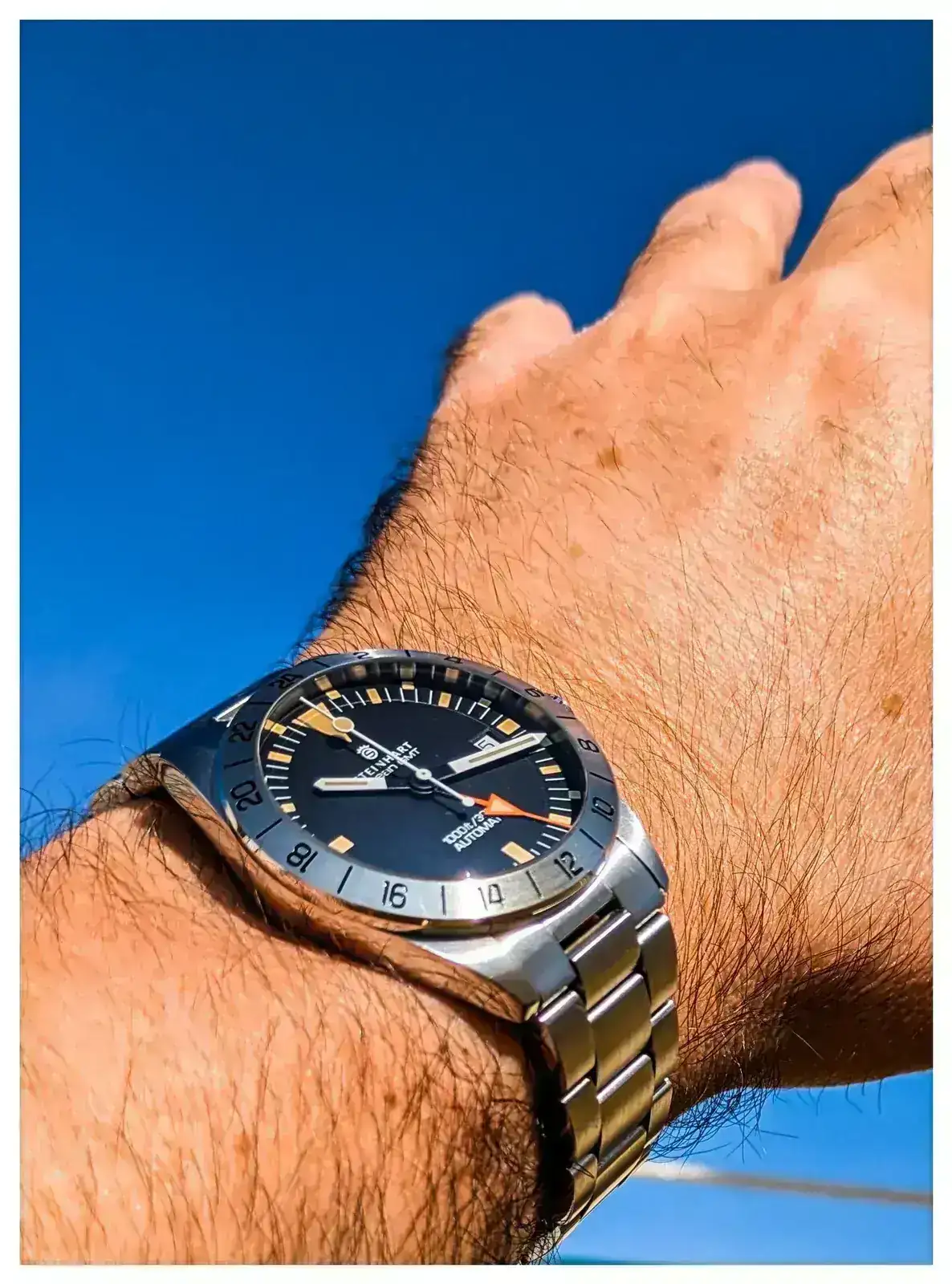 Luce muchísimo en esa estupenda imagen. Me gusta cómo le queda esa correa y también el contraste del negro, del calendario y del segundero, sobre esa esfera que casi parece nacarada :ok: