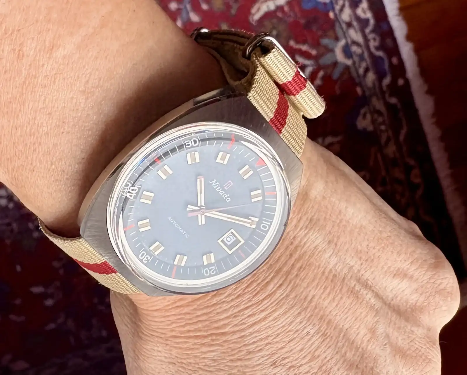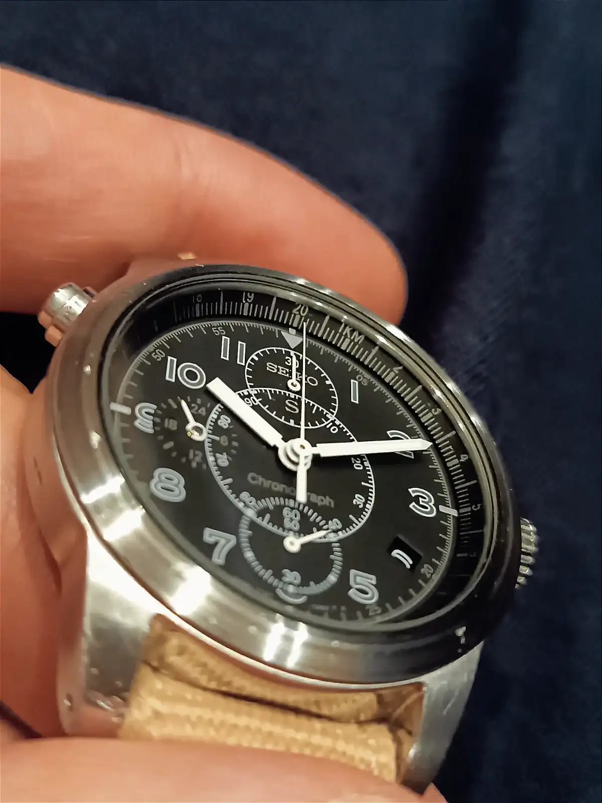 Aprovecho para compartirte una publicidad de la época, que siempre es bonito. Está en japonés, pero me ha hecho fijarme en el detalle que denomina "dial ring". En el caso del cronógrafo, incorpora una función de telémetro ahí (la foto no es muy allá pero a estas horas...).