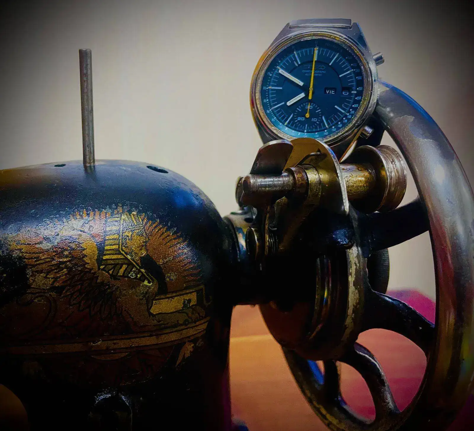 Qué recuerdos me vienen al ver esta máquina (mi abuela, tenía una muy parecida). Muy bien traídas las fotos con el precioso SEiko.