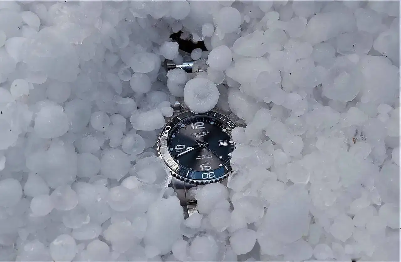 Por mi barrio,brutal JesusViernes, Longines y tremenda granizada que ha caído hace poco más de tres horas aquí, muy gorda, importantes daños materiales y los que me imagino en la naturaleza