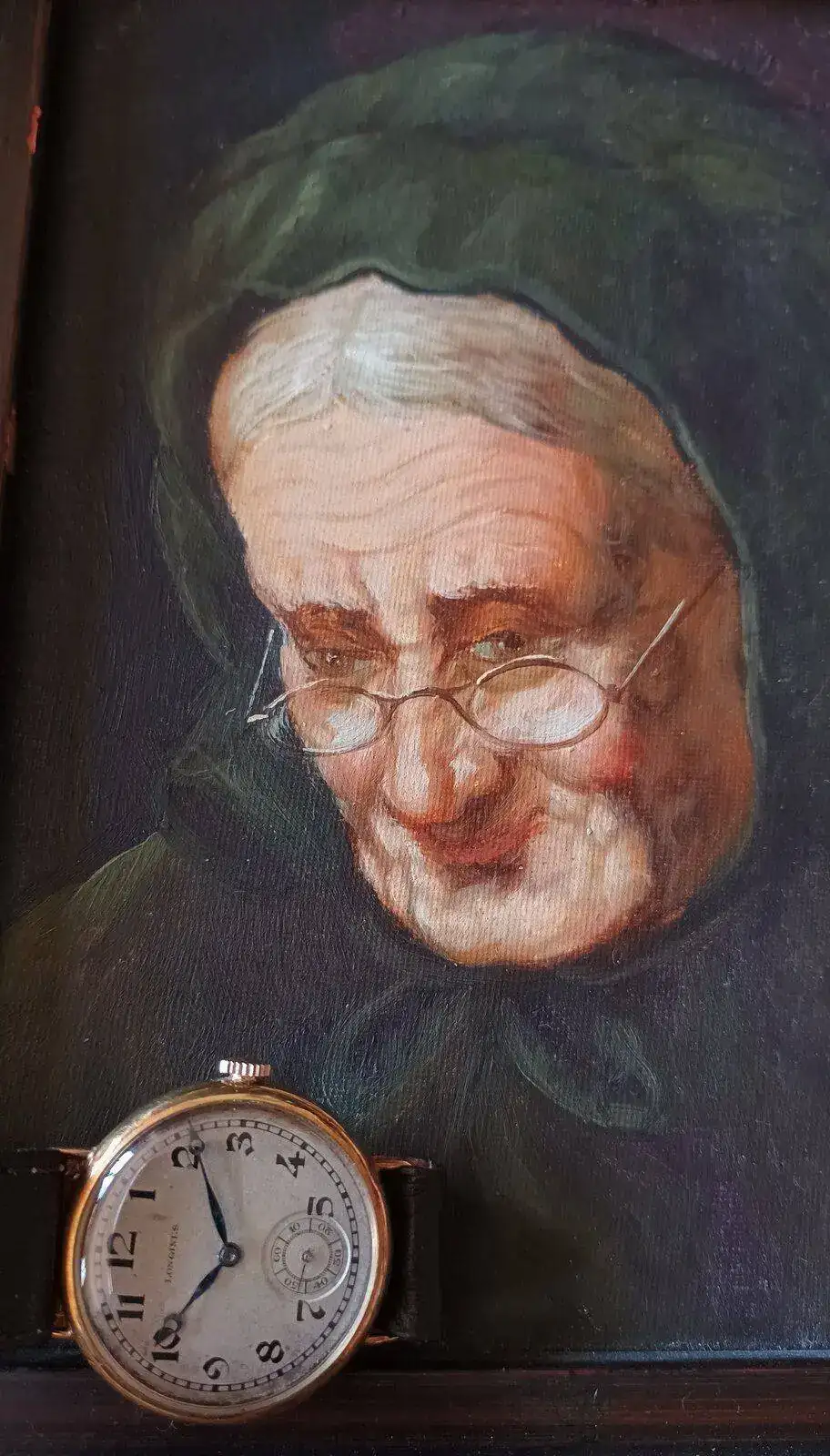 JEjejeje. bien traído el título. Qué bonito Longines. Salud !Motivo: Abuela, mirando el reloj del abuelo.