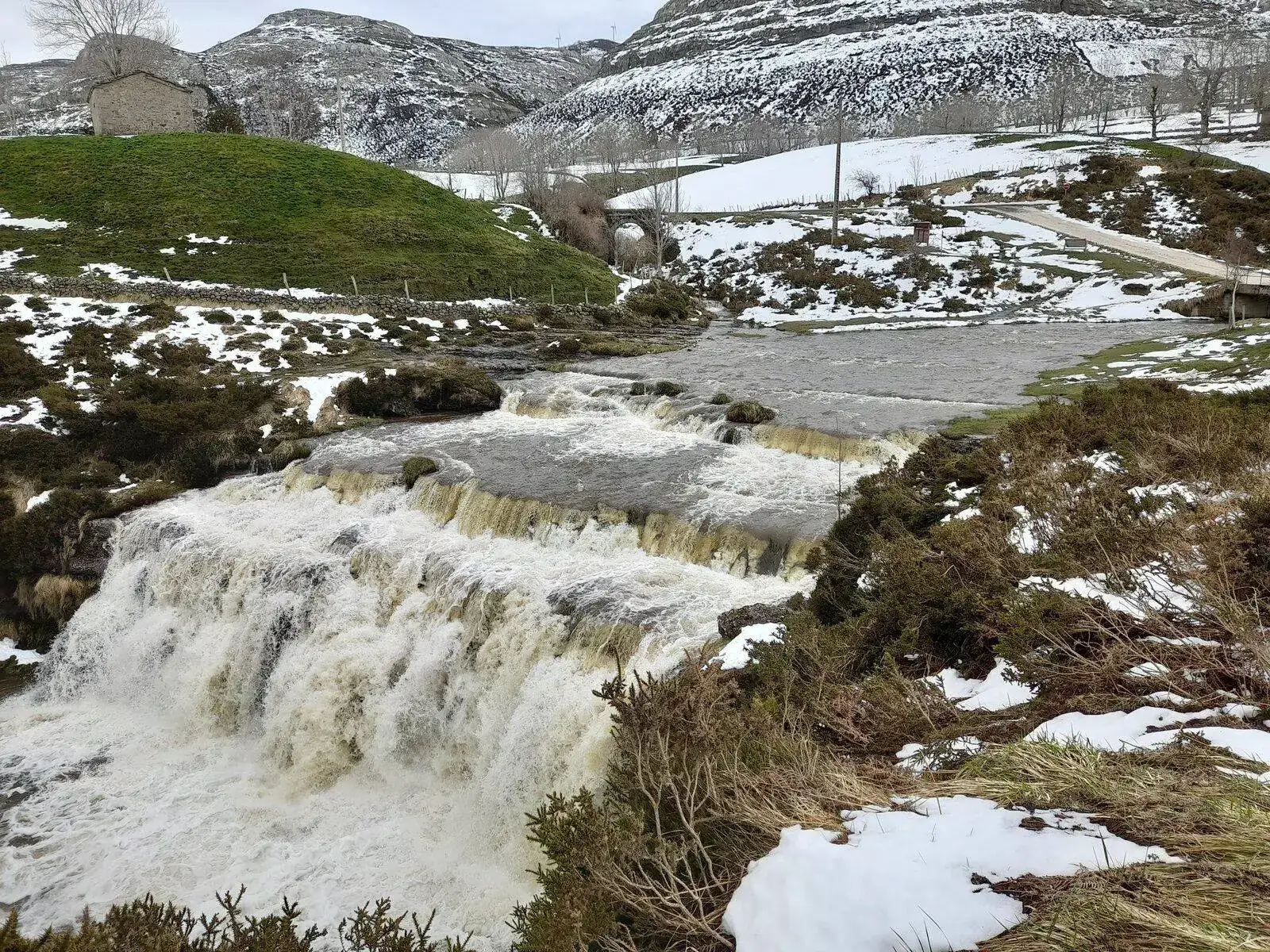 La de la cascada de La Mea, espectacular.Se ve muy nevada la Meseta de la Muela, en cuyas laderas nacen riachuelos que nutren a la cascada.