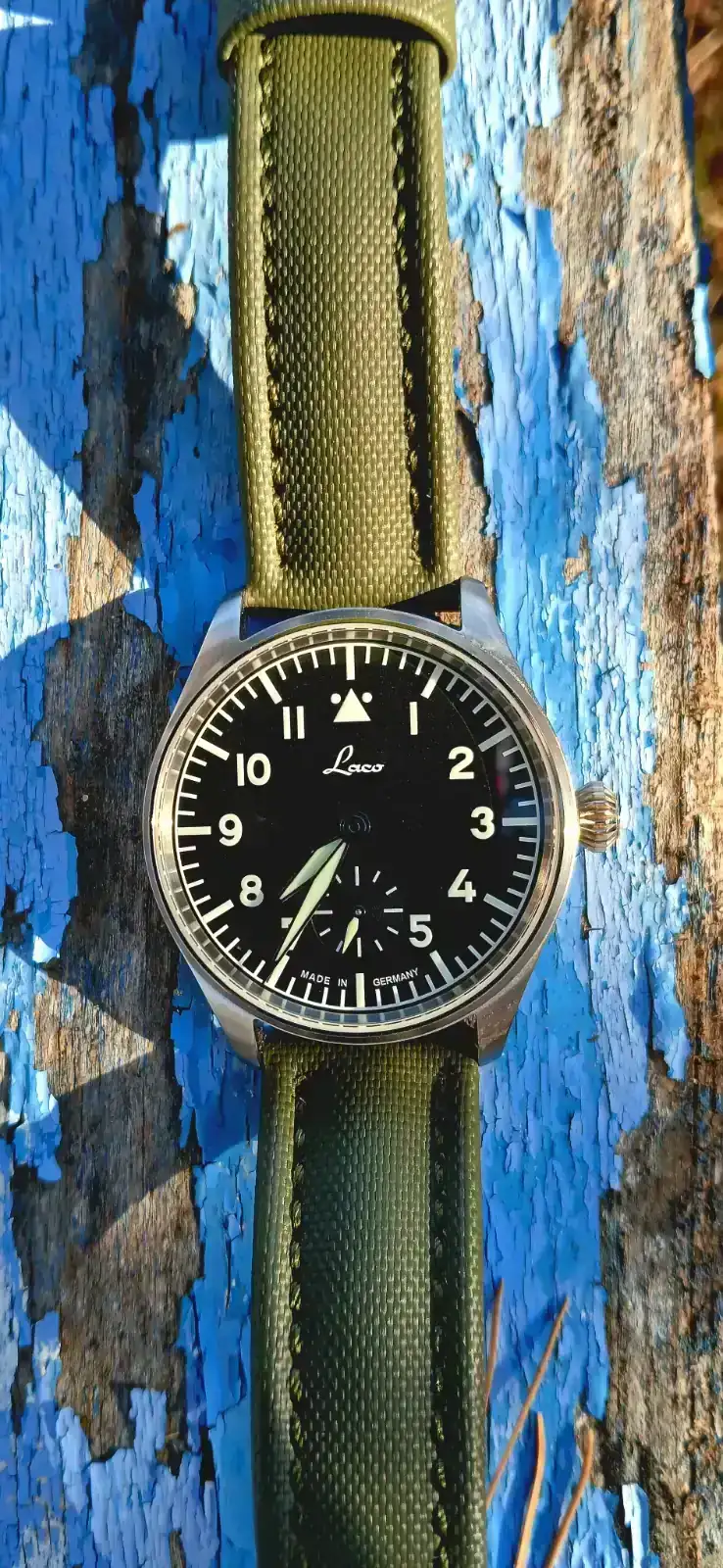 Hola. La correa original es de piel. Esta es de caucho de la web watchbandit, por 49 euros y envían desde EU. Tienen muchos modelos y colores. Un saludoBuenos días compañero!. Precioso tu Laco, me encanta. ¿Lleva su correa original?.¿ Su envés es textil o de piel?. Ando buscando algo así para mi Oris pro Pilot para evitar el deterioro de su correa con el calor. Un saludo!