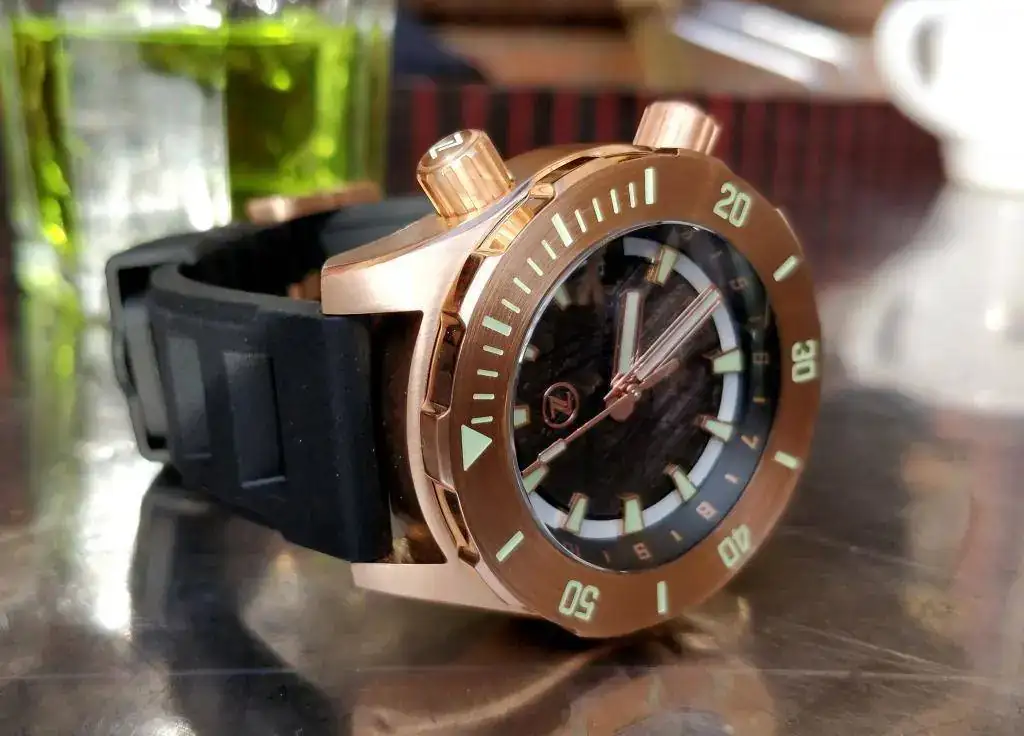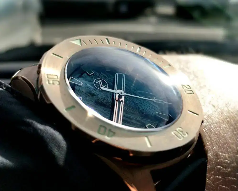 Bonito y contundente a la vez. Ya nos diras que tal va de precision.Para hoy, este Zelos 3000m., bronce y esfera de meteorito. Llegado hoy mismo: