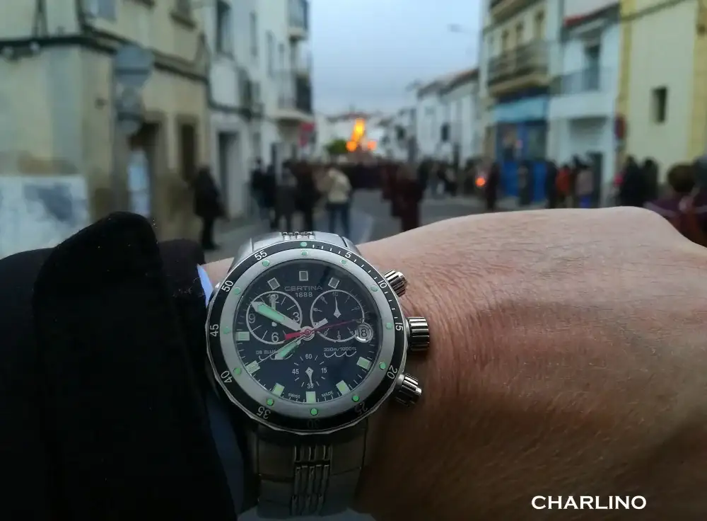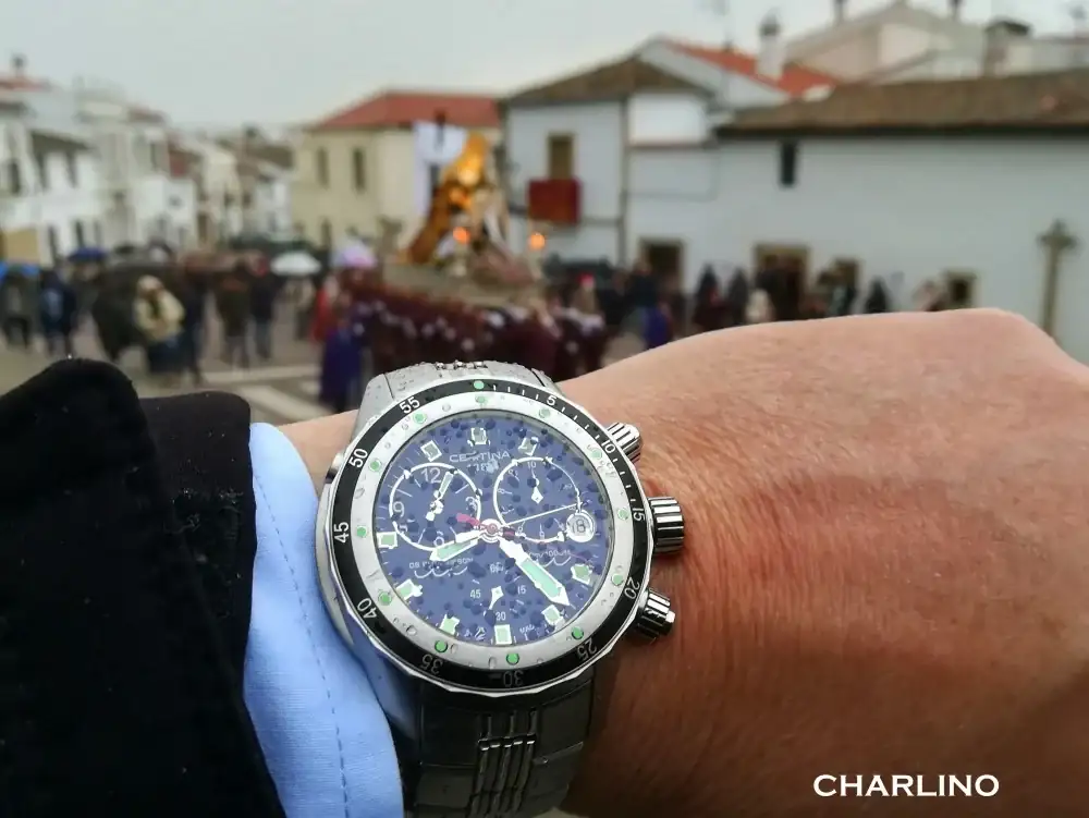 Que bonito!!Mi Certina DS Blue Ribbon mojándose desde muy temprano. Para la procesión del Alba de este año he elegido un muy apropiado 330M.