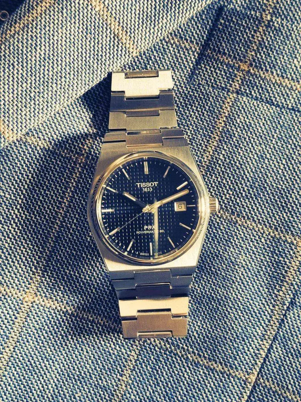 Que bonita foto! Se confunde el dial del reloj con la tela.