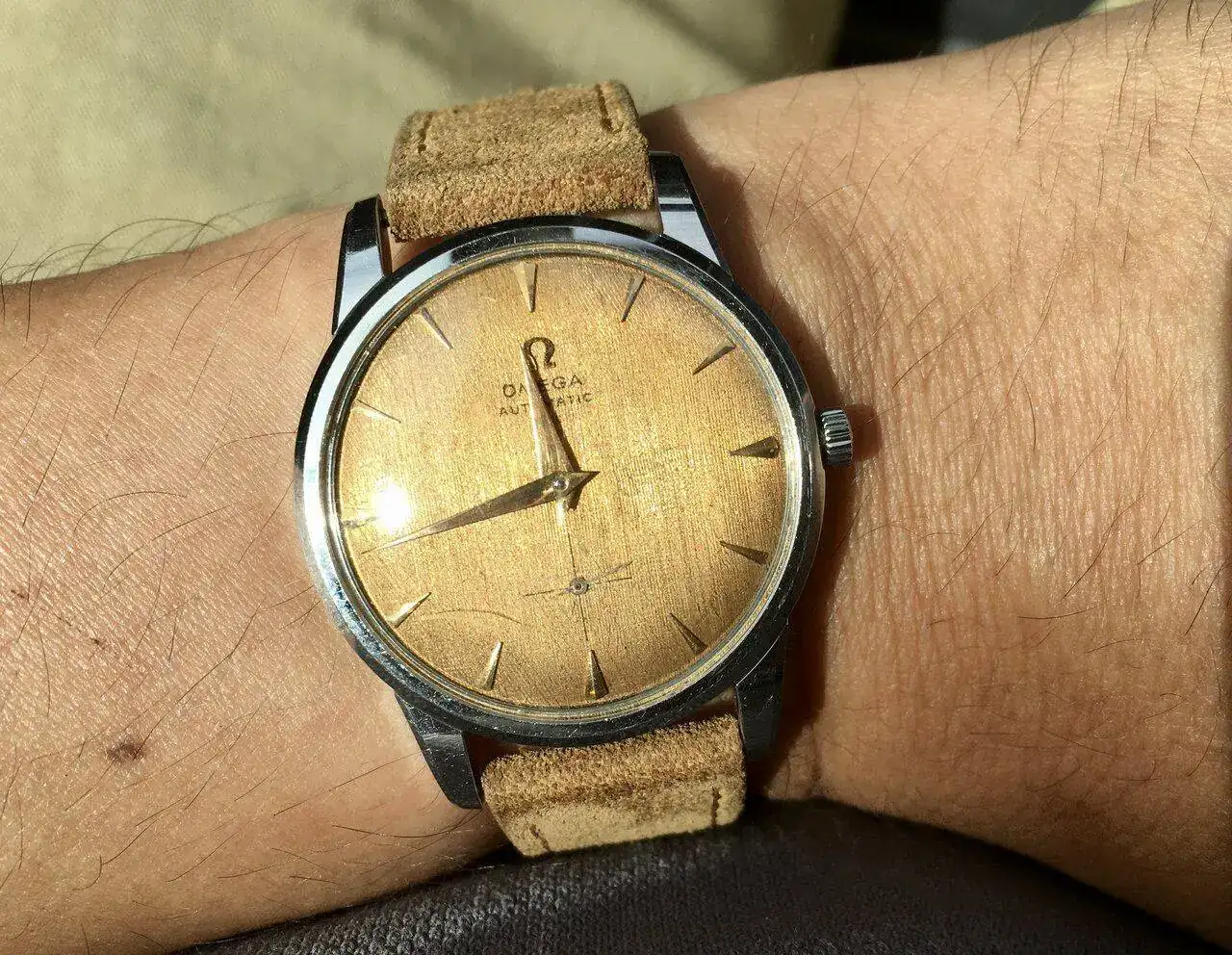 Hoy, con este Omega que me encanta y que creía todo original, aunque he visto que la referencia del brazalete (1181-215) no es la que debiera ser (1153-138). ¡Qué cosas!, y yo que lo veía perfecto…