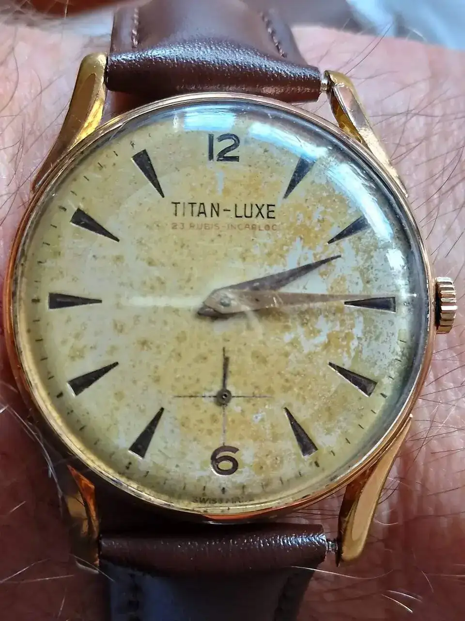 Que bonito Xabier. Lo compraste sabiendo ya cómo funciona la esfera? Lo buscabas por esa peculiaridad? Yo me habría pensado que me ha llegado un reloj roto al no saber manipularloPues acaba de llamar el cartero (como siempre, dos veces), así que de panda inverso paso a panda dorado recién llegado. Un cronógrafo Dreffa con una estética muy de su época, muy dorada. Y prácticamente como nuevo, para la edad que se le supone. Aunque la verdadera riqueza para mí está en el interior, en lo que considero un corazón de oro: Valjoux 92.