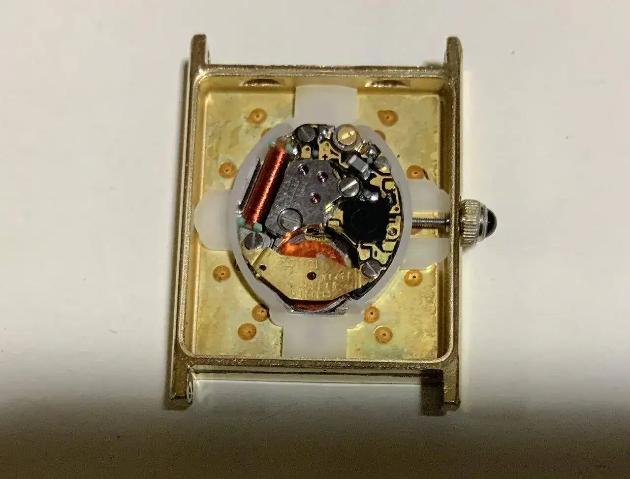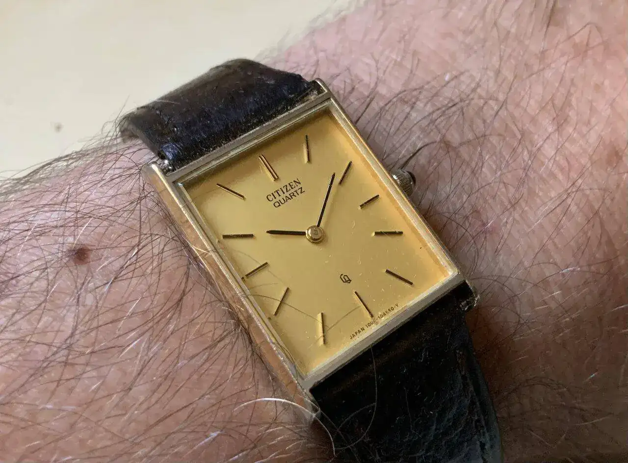Lleva un movimiento Citizen con 5 rubíes, de la primera época del cuarzo.