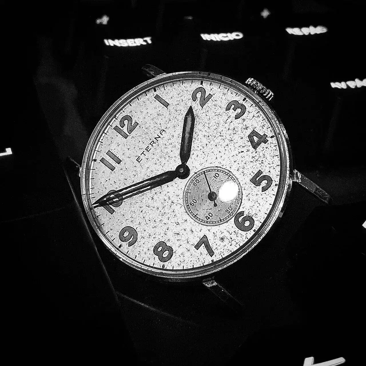Atinaste: la corona a las 10 es la que permite ajustar cada mes el día 1 al día de la semana que corresponde (que están fijos en el perímetro exterior de la esfera, tras las indicaciones horarias). Peeeeeeeero, además, esa corona en su segunda posición es también la que permite mover el disco del mes.