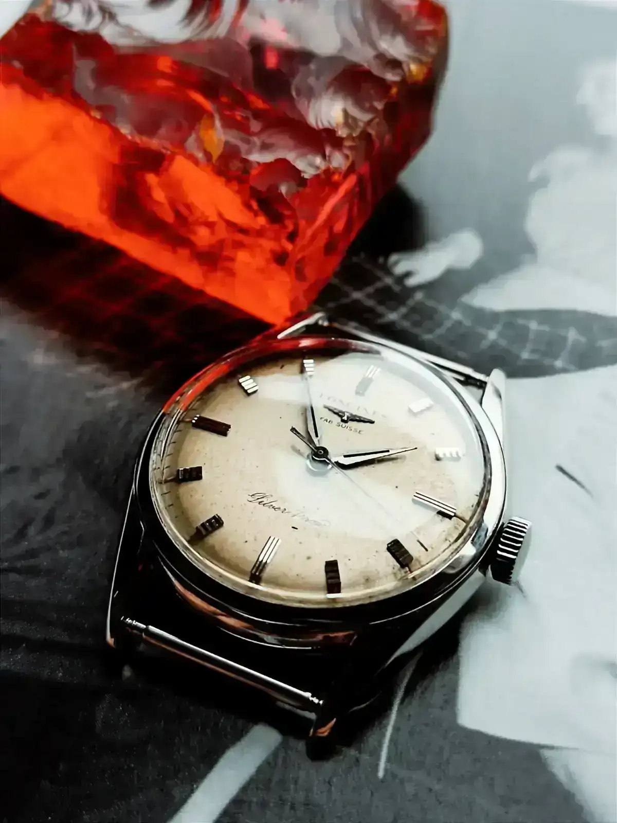 Curioso efecto que produce la luz intensa en el oro. He tenido que ponerme la lupa para ver que la cruzeta está en el centro de las 12 y las 6 porque el exceso de sol directo lo hace brillar hasta hacer desaparecer parte del índice.