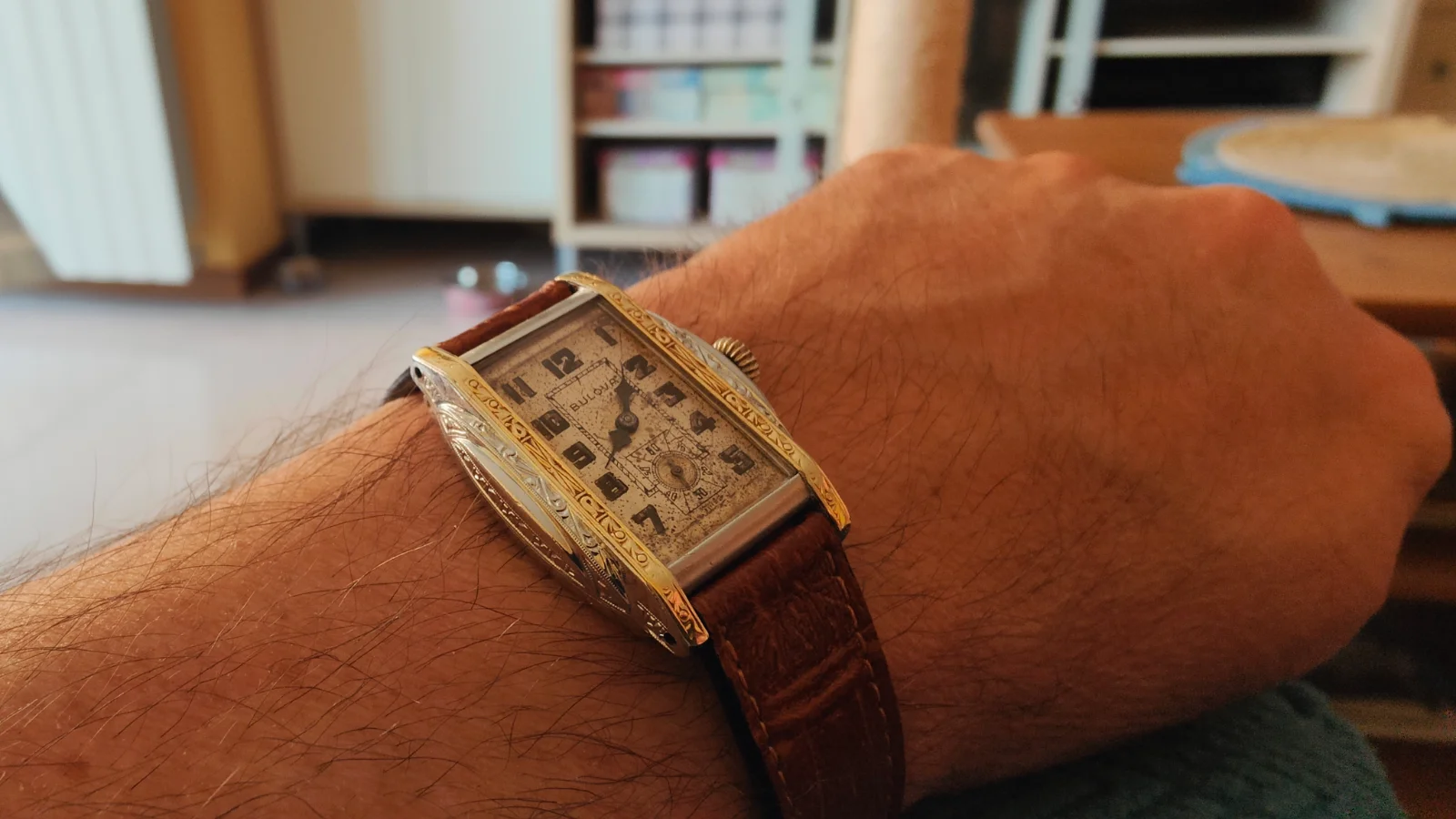 Bueno, pues eso, Bulova art decó, modelo Gladiator, 1930, con esfera acribillada.