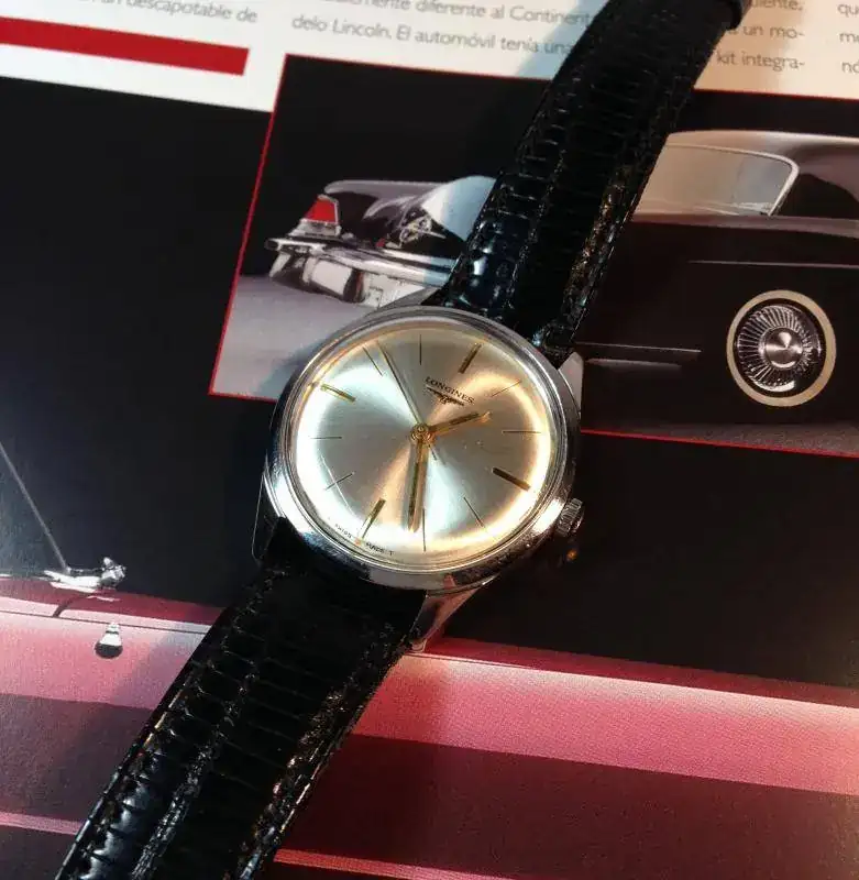Hoy presento a un nuevo miembro de la familia, recién llagado hace un par de días, se trata de un Longines de 1966 con un calibre 280, el reloj se encuentra en una muy buena forma y anda muy muy bien, sin embargo la maquina no se encuentra en un estado total de pulcritud,y tiene un par de grietas en la mica en la parte inferior, habrá que remplazarla.