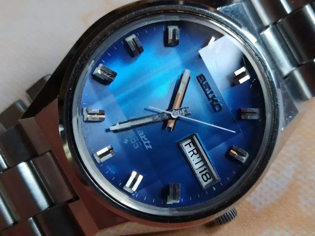 Qué azul más impresionanteBuenos días ; Seiko 3003 cuarzo de diciembre de 1973 con esfera cambiante por su cristal con facetas. Q tengais un buen viernes y saludos al sotano & al foroVer el archivos adjunto 2539366Ver el archivos adjunto 2539367Ver el archivos adjunto 2539368Ver el archivos adjunto 2539369Ver el archivos adjunto 2539370
