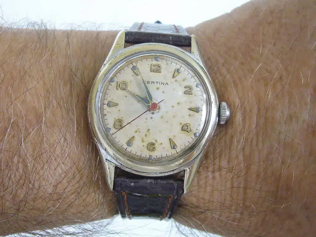 Yo llevo hoy el Certina que terminé de acomodar ayer tarde y al que en la foto no consigo sacar como se merece. Aunque es chico en mi muñeca no lo parece.