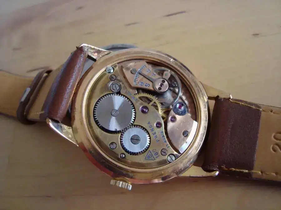 Su caja, de generosas dimensiones, 38 mm sin contar la corona, posee unas bellas asas. La caja chapada en 20 micrones se conserva en muy buen estado