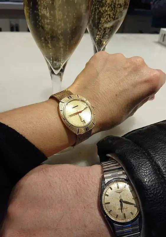 Preciosa foto, precioso brindis y relojes.