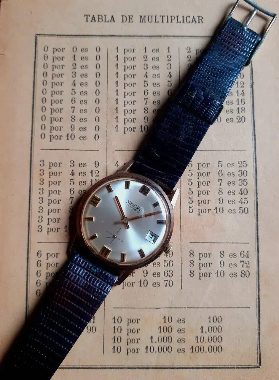 ¡¡¡Gracias por comentar, Miguel. La tabla es parte de un "Nuevo compendio de aritmética práctica" publicado en 1893. El reloj era de mi padre, lo compraría en los años 60 supongo, está en muy buen estado pero no funciona, supongo que necesitaría, como mínimo, una revisión.Qué bonita esa tabla de multiplicar , bien completita , la verdad es que nunca vi una parecida, ahorrando repetir dos veces la misma operación, que bonitas y que exactas son las matemáticas.