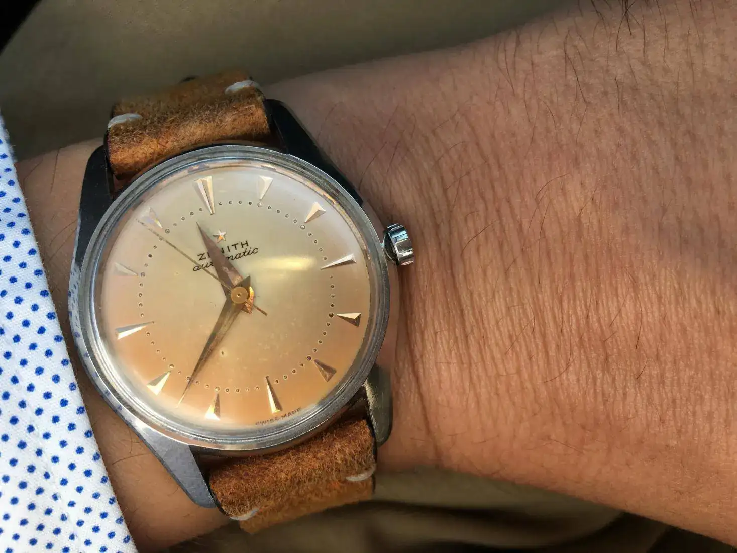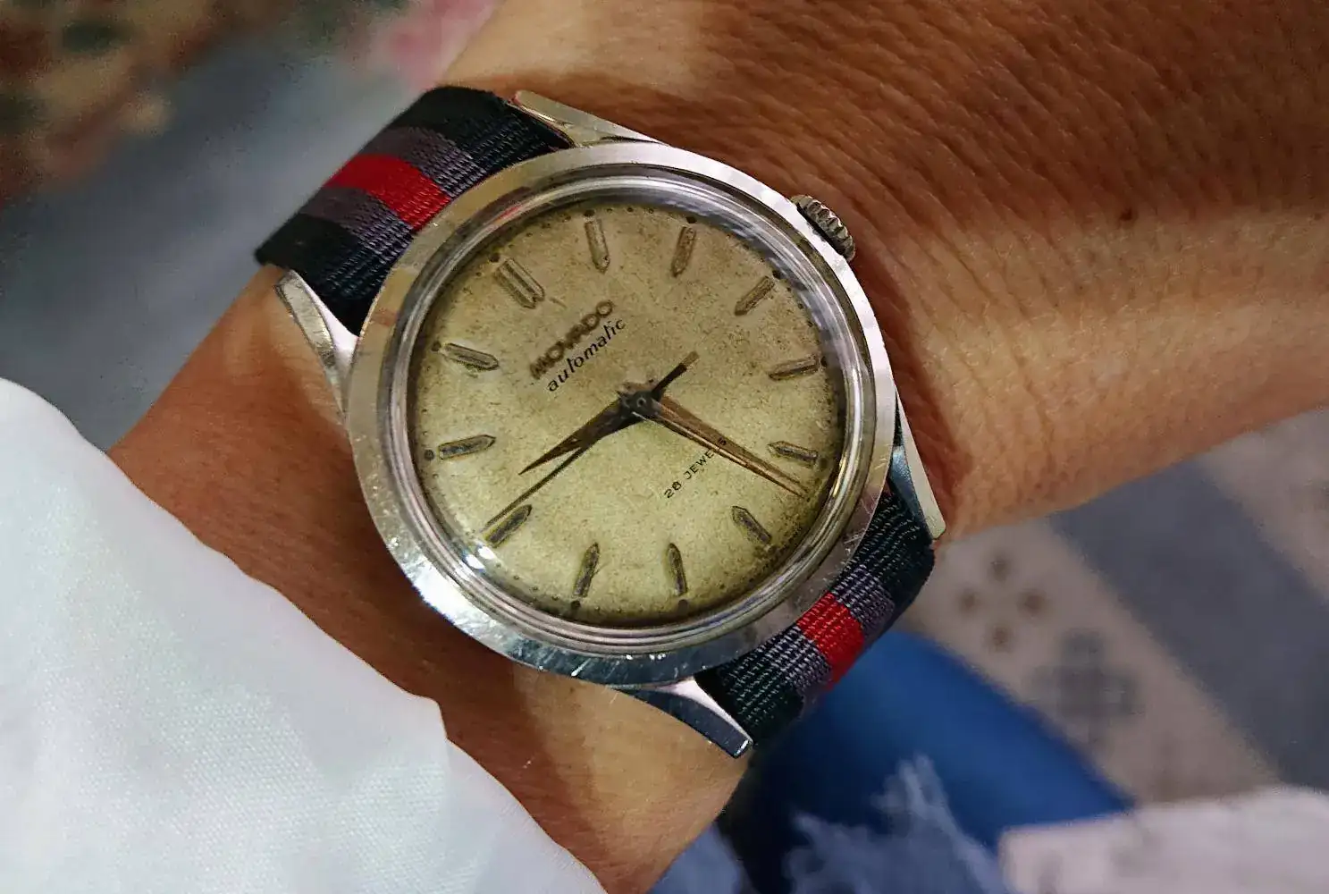Me encanta el reloj y esa esfera tan uniformemente desgastada, vintage en su máxima expresión.