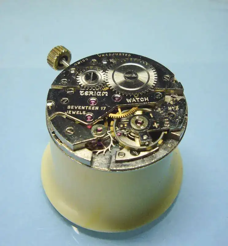 Yo como llevo algún día haciendo rabona hoy voy por partida doble. He iniciado el día con este Titán que monta una Eta 27XX y también es muy, muy gris, el pobre (acorde a los tiempos que vivimos) y lo he llevado mientras ponía en orden una pequeña preciosidad que compré en el jueves pasado y tenía el eje volante roto. Monta una AS 984/1002 que tiene como curiosidad el fuerte puente exclusivo para la rueda de escape y que el tornillo del rochete de carga tiene la rosca cambiada, como la rueda corona. Debe haberse montado poco, al menos por aquí, ya que mi amigo relojero tenía bastantes ejes de este modelo. Una vez terminado de asear y aceitar lo he cambiado en la mano por el Titán.