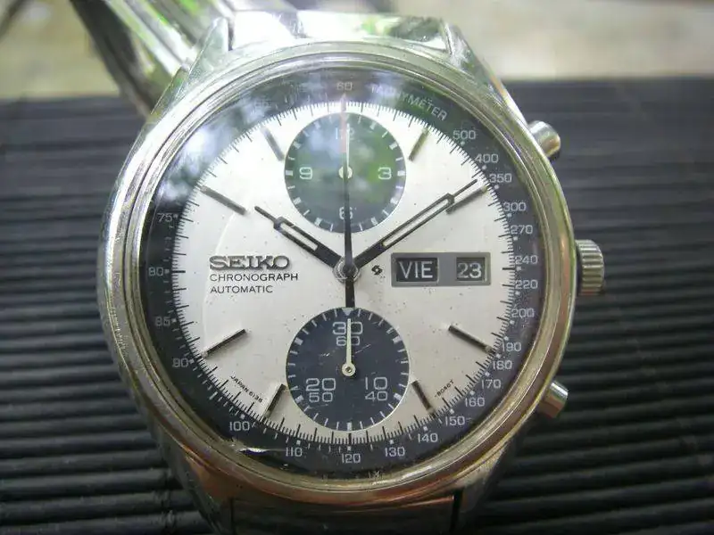 Como bien sabrán, se ha dado en llamar esferas (o diales) "panda" a los de aquellos cronógrafos de pulsera de esfera blanca con dos contadiores en negro (u oscuro). No estoy seguro ni dispongo ahora de tiempo para comprobarlo, pero diría que el primer crono al que se apodo así, dada su procedencia oriental, fue el Seiko 6138-8020, aunque en realidad hay que poner el reloj de lado para que parezca la configuración de un panda de verdad...