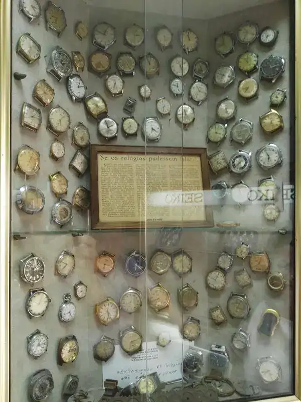 Creo que ese buen hombre es consciente de que tiene un pequeño capital parado y el razonable interés por lucrar no lo lleva a eliminarlos utilizando esa vitrina para exponer modernos cuarzos que, seguro, vendería en muy poco tiempo con lo que el giro de ese capital sería sumamente beneficioso para su bolsillo.