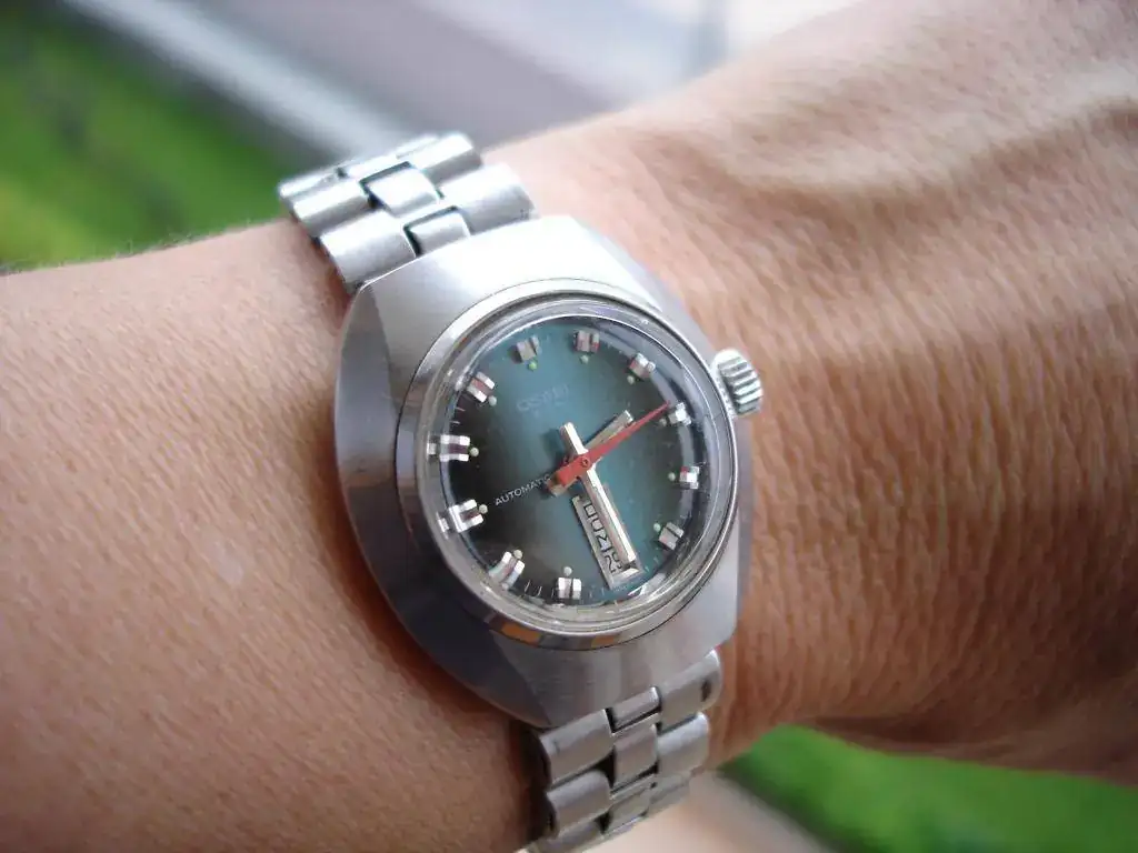 Me encanta también el tuyo: una cajota bien setentera llena de acero y con el cepillado a soleil intacto, índices de taco y precioso color y textura en la esfera